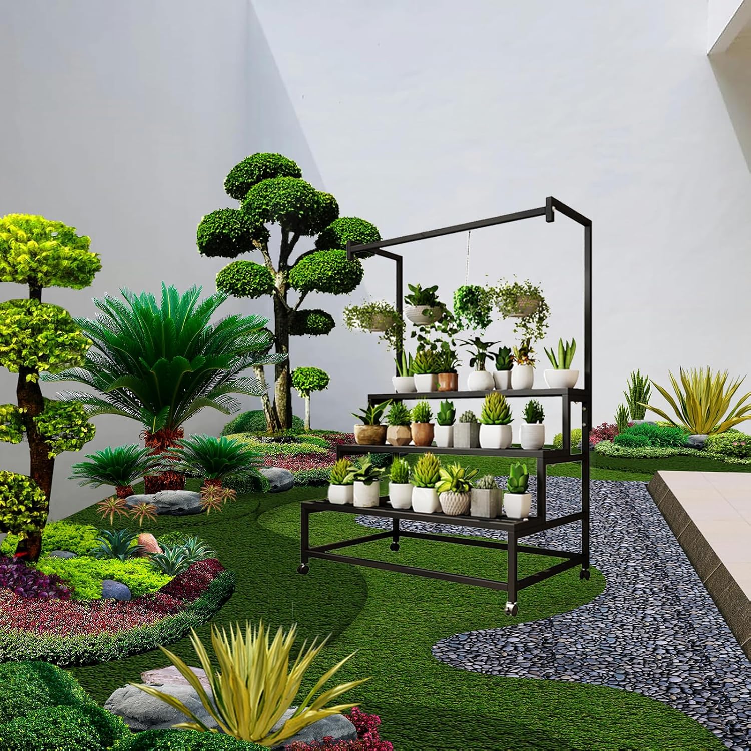 - With hanging design: This multi-tier plant stand comes with a hanging rod, which adds reasonable space for hanging basket plants, also can hang your garden tools, more convenient to use, differentiate it from ordinary plant stands.