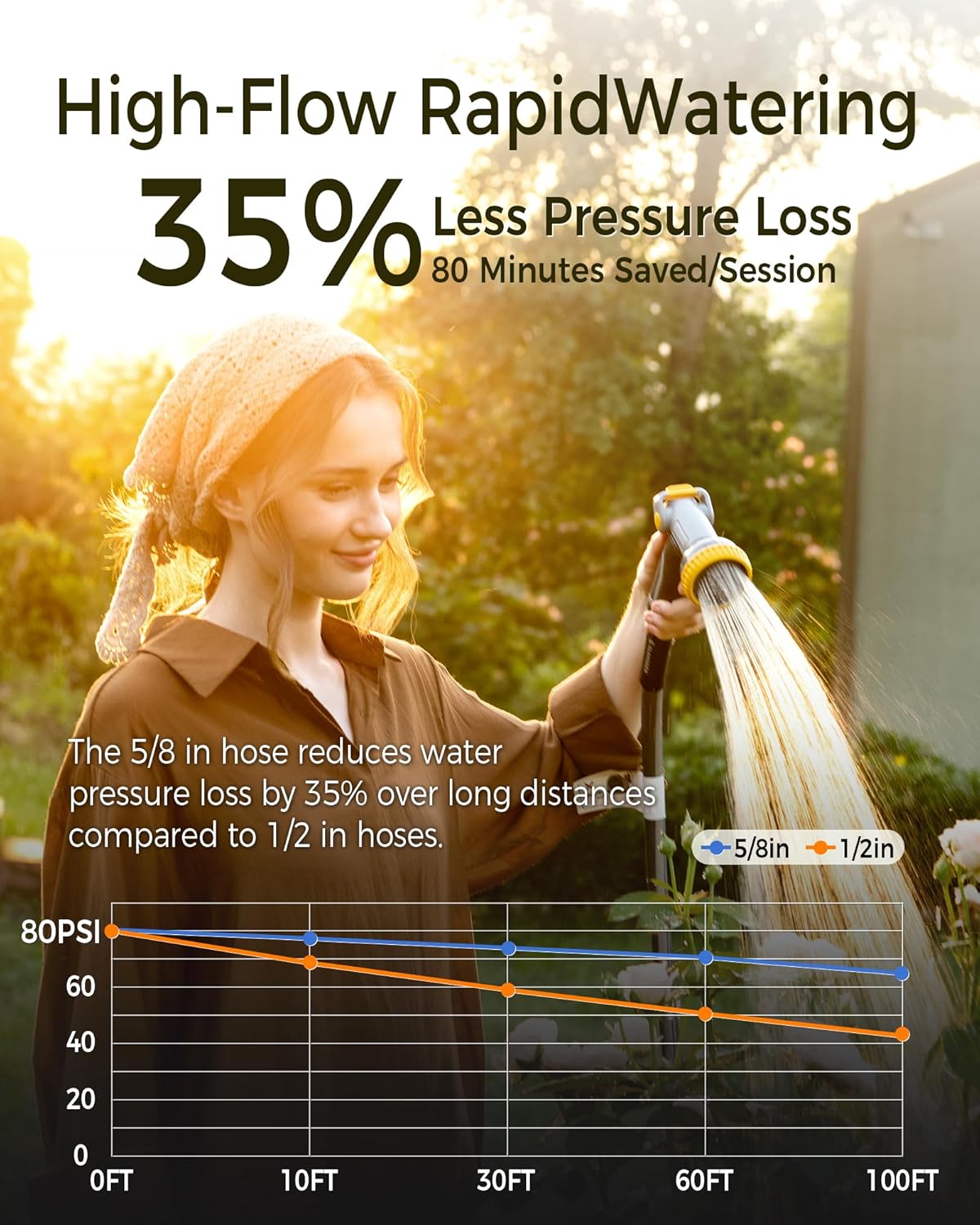- Built for Real-World Safety: Our hose reel for outside uses 3-layer PVC + reinforced fiber braid, tested to 348 PSI burst pressure with a 120 PSI working pressure for reliable, long-term performance. Unlike inflated claims, this 3X safety margin ensures no leaks or bursts, delivering 2+ years of stable use without the risks of overrated pressure.