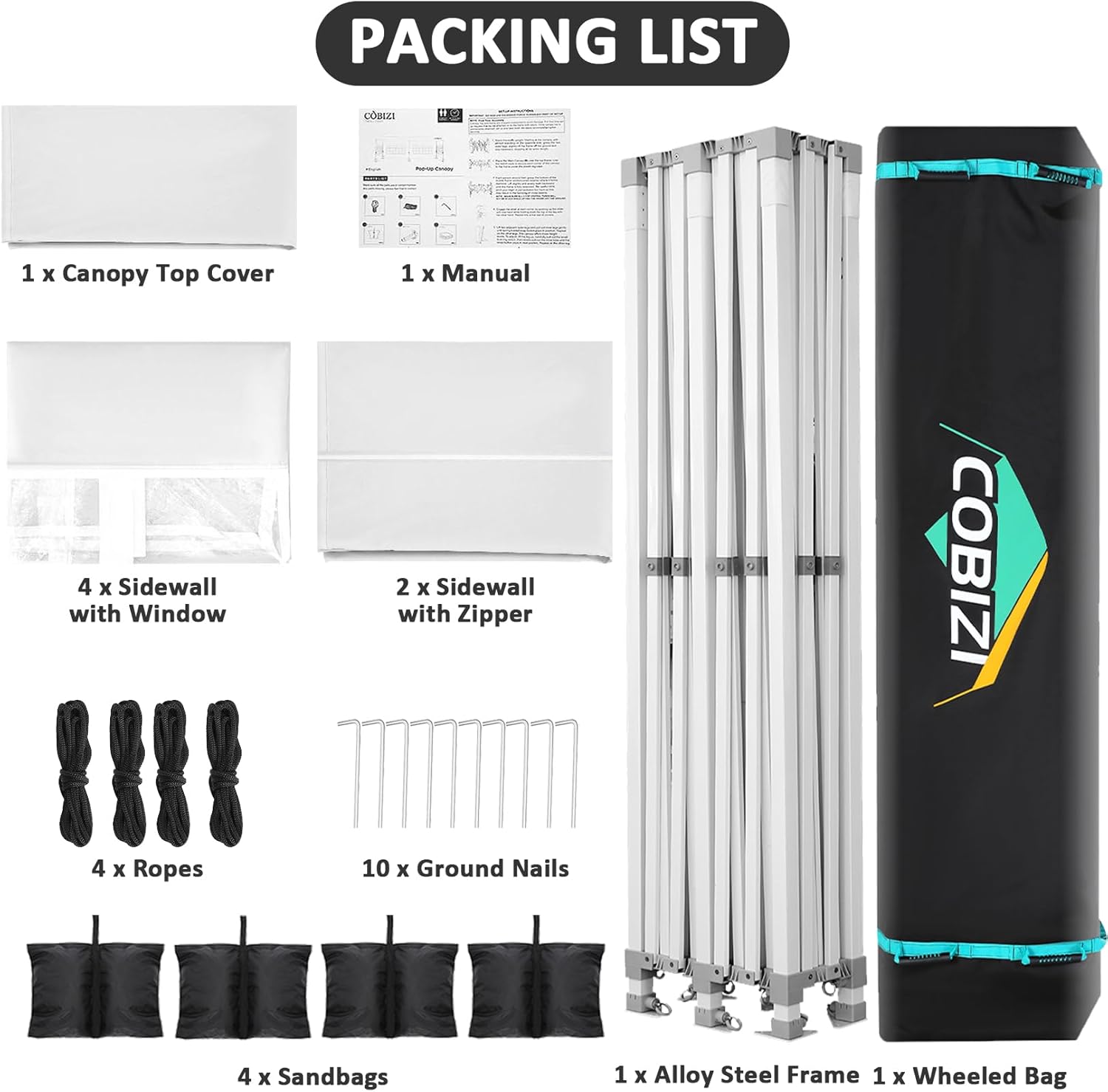 COBIZI 13x26 Pop Up Canopy with 6 Sidewall,Heavy Duty Canopy UPF 50+ All Season Wind Waterproof Commercial Outdoor Wedding Party Tents for Parties Canopy Gazebo with Roller Bag(13 x 26 ft White)