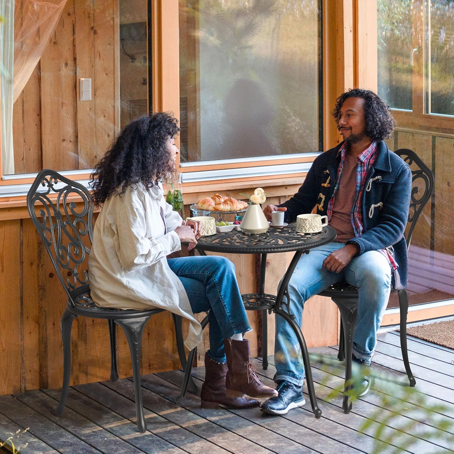 - WEATHER-RESISTANT: This patio bistro set is made from sturdy and solid cast aluminum, so itโs resistant to rust, weather, fade, chip or crack. With durable antique bronze finish and carefully burnished spotwelds, it can last season after season
