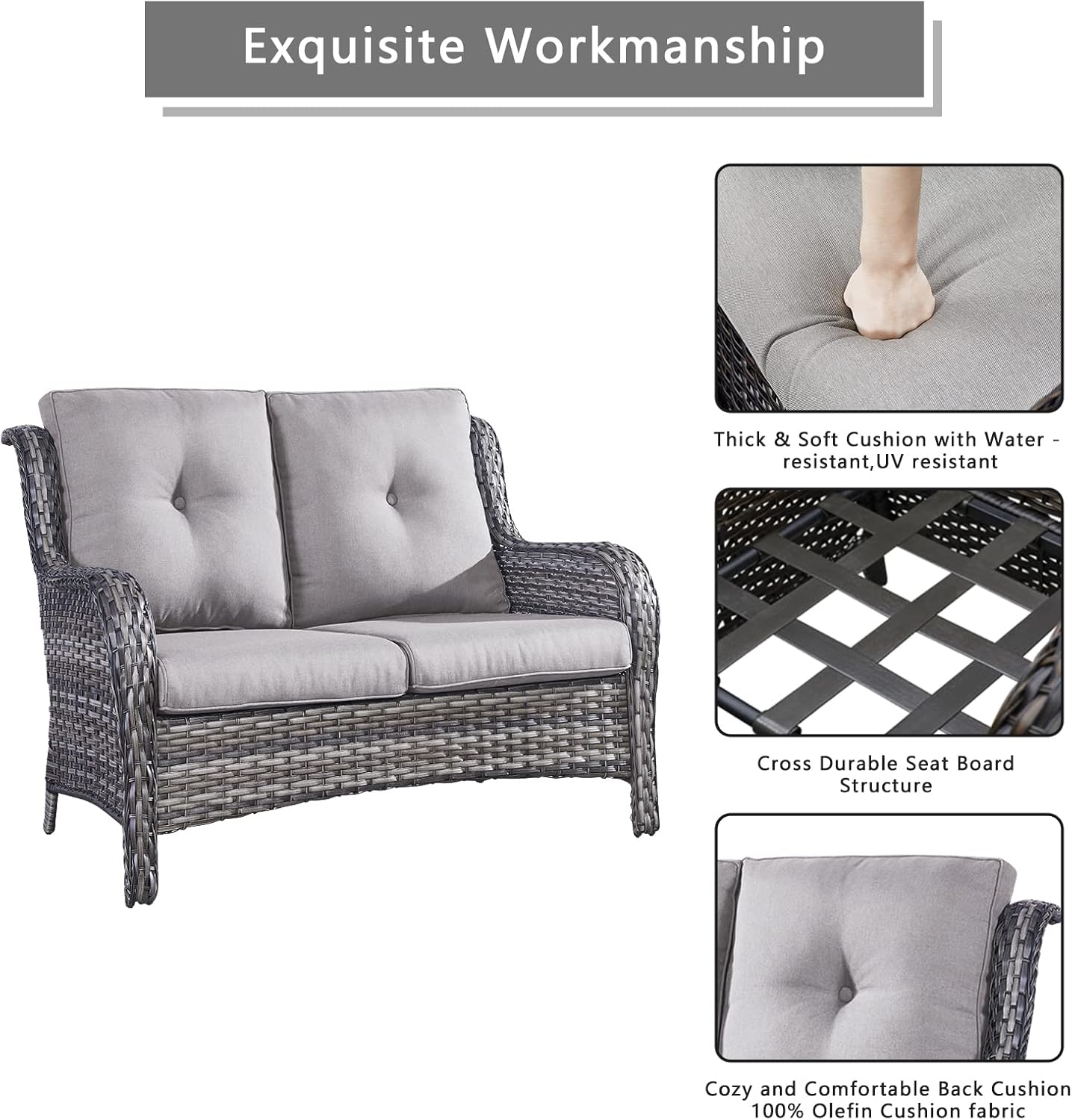 - 【Comfort Cushions & Deep Seating】This patio wicker swivel chairs and loveseat feature deep and wide seats,with 4-inch thick sponge-padded seat cushions,5-inch back cushion create the ultimate patio seating experience.