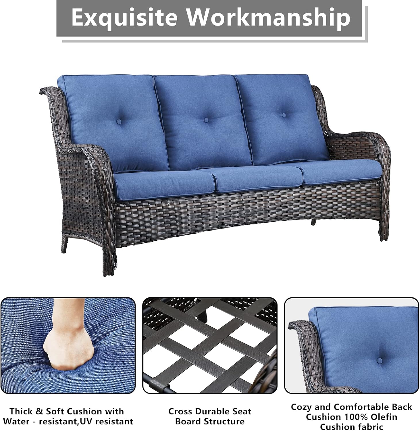 - 【Comfort Cushions & Deep Seating】This patio wicker swivel chairs and sofa feature deep and wide seats,with 4-inch thick sponge-padded seat cushions,5-inch back cushion create the ultimate patio seating experience.