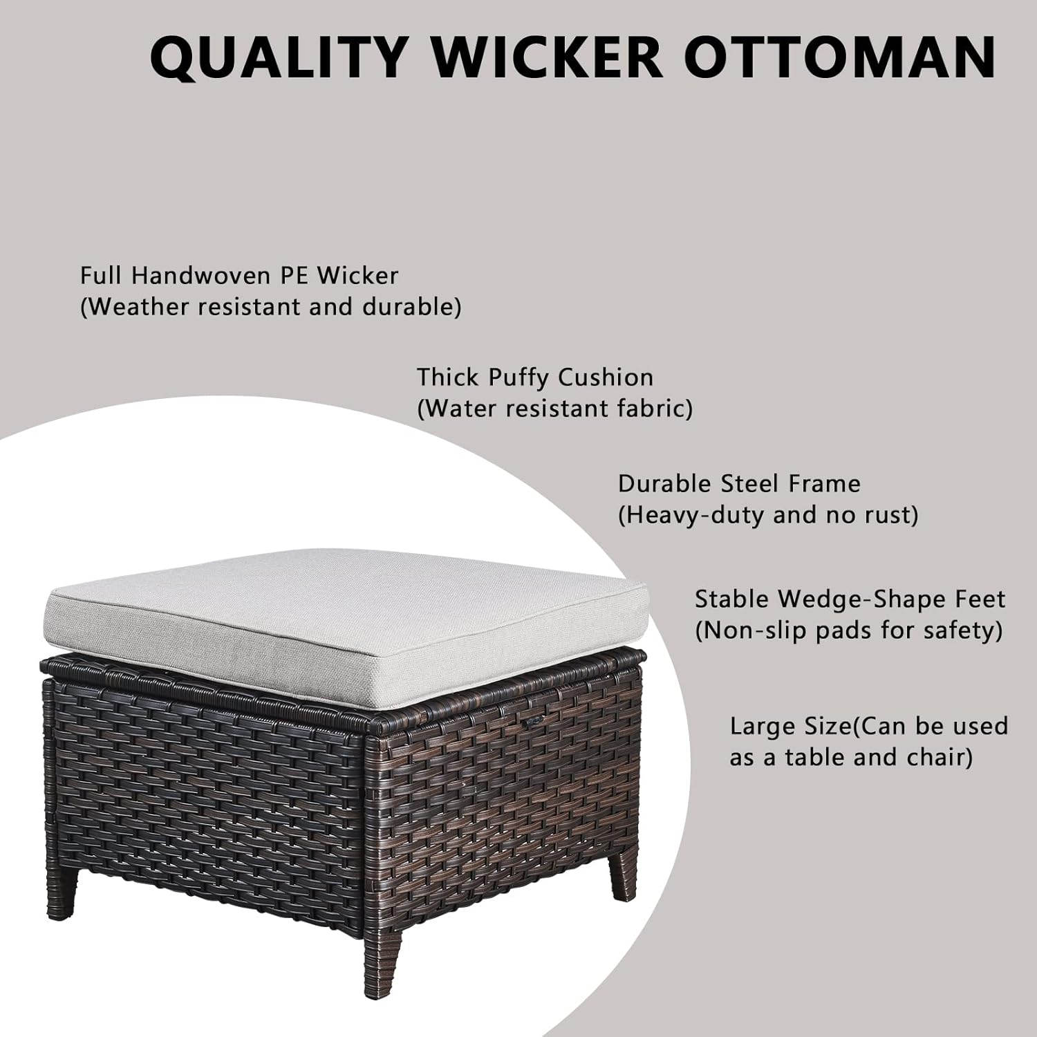 - 【Sturdy & Durable Materials】This outdoor patio swivel chairs,couch and ottomans are constructed with hand woven with weather-resistant PE rattan & powder-coated steel frame to make the outdoor seating set sturdy and durable for a long lasting outdoor use.The wicker rocker chair can holds up to 350lbs weight capacity.