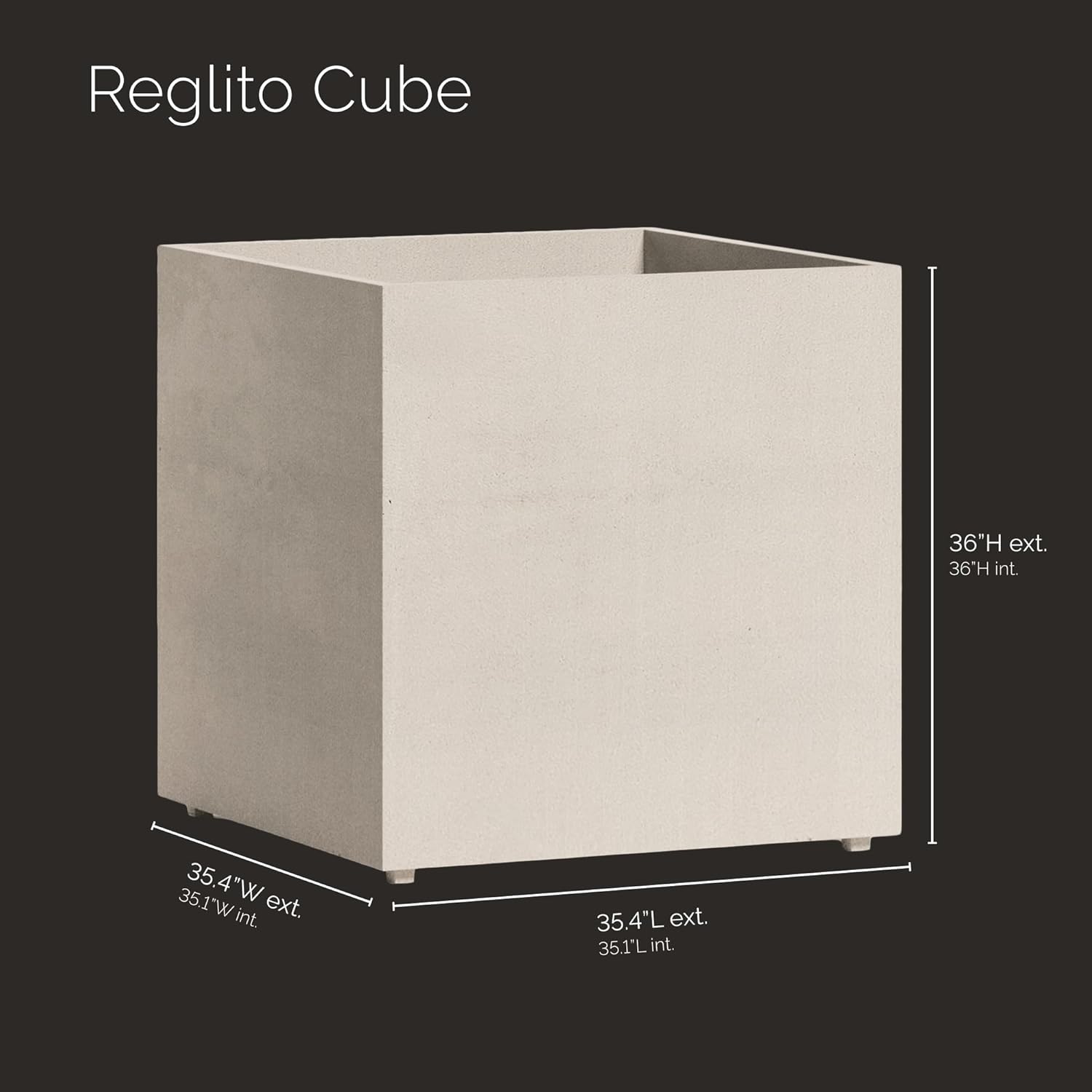 - LIGHTWEIGHT DURABILITY – Constructed from premium fiberglass and resins, the Reglito Cube’s waterproof exterior offers the look of concrete—without the weight—for easy installation and moving.