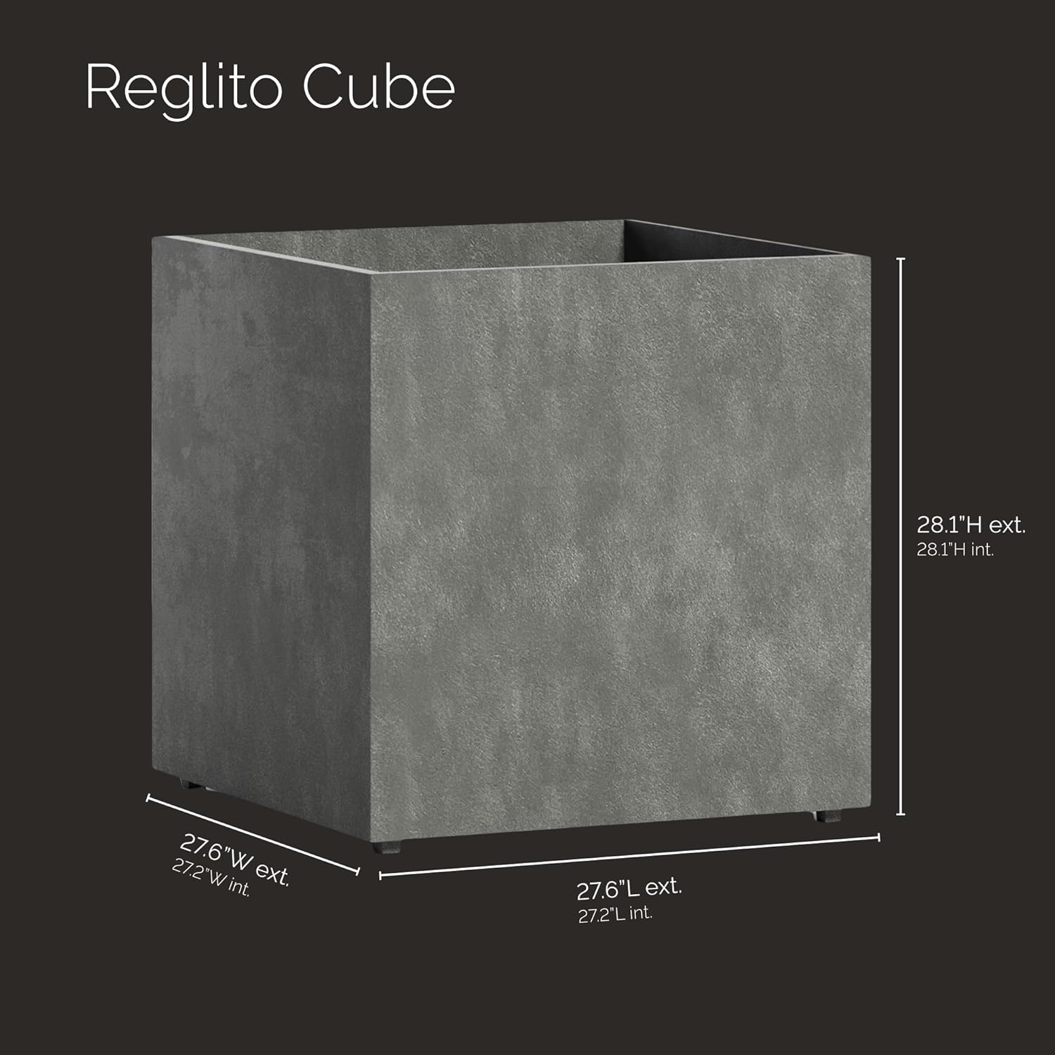 - LIGHTWEIGHT DURABILITY – Constructed from premium fiberglass and resins, the Reglito Cube’s waterproof exterior offers the look of concrete—without the weight—for easy installation and moving.