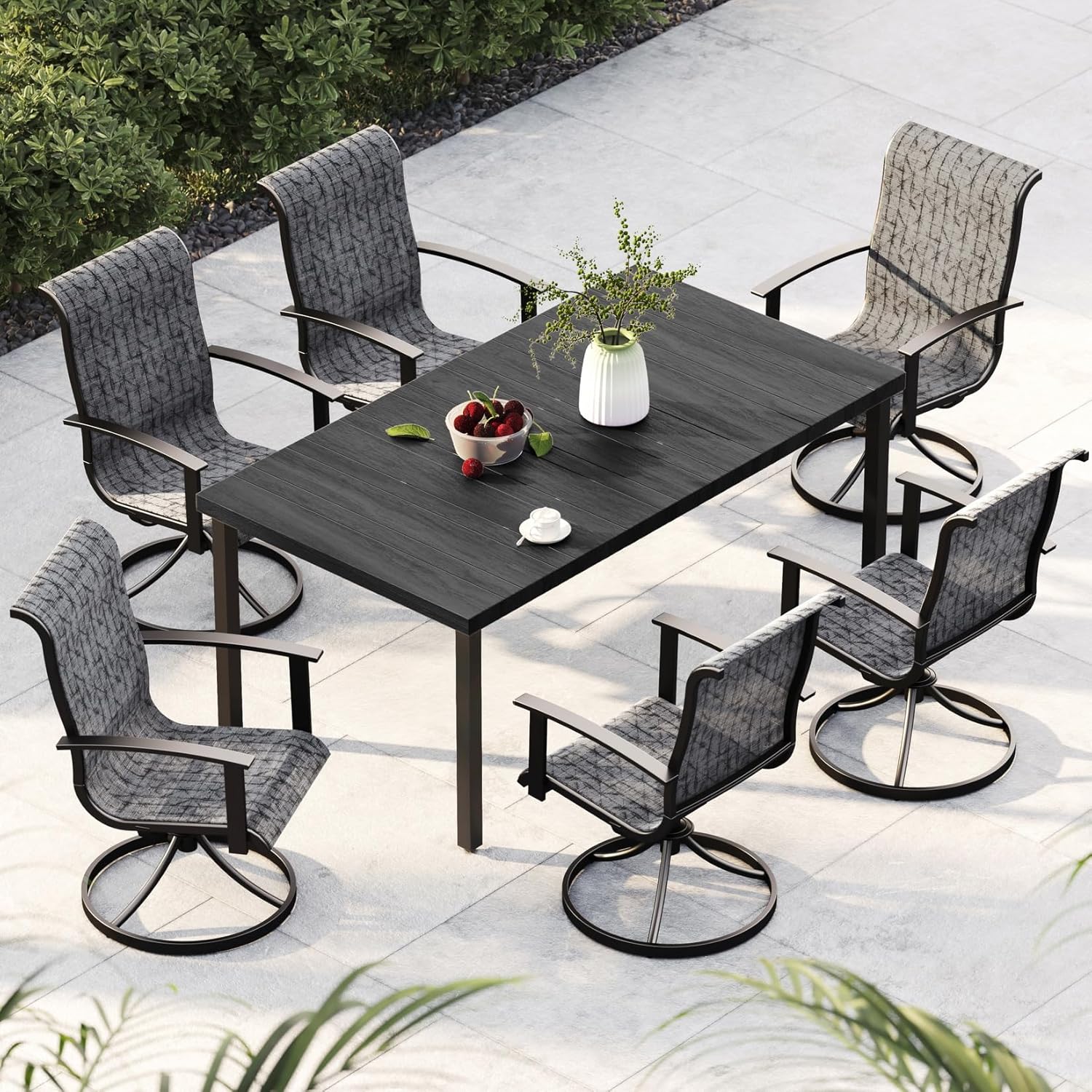 Grand patio Outdoor Swivel Dining Chairs 6-Piece Patio Dining Chair Set Mesh Sling Patio High Back Swivel Rockers, Black & Grey Plaid