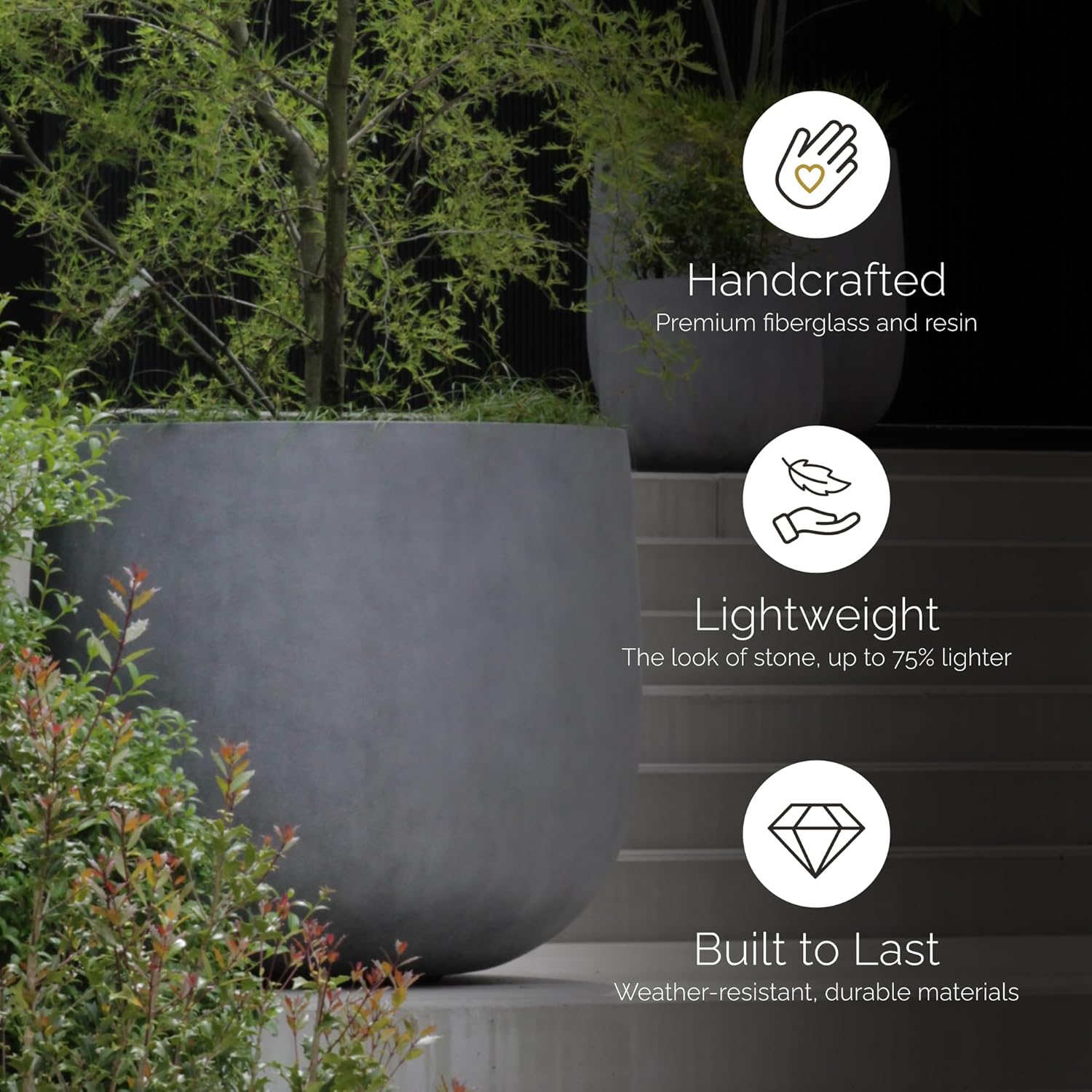 Mondo Large Planter – Grey Stone Finish – Fiberglass Indoor/Outdoor and Weather-Resistant Round Planter (19.7" D x 19.1" H Exterior, 18.5" D x 18.5" H Interior)