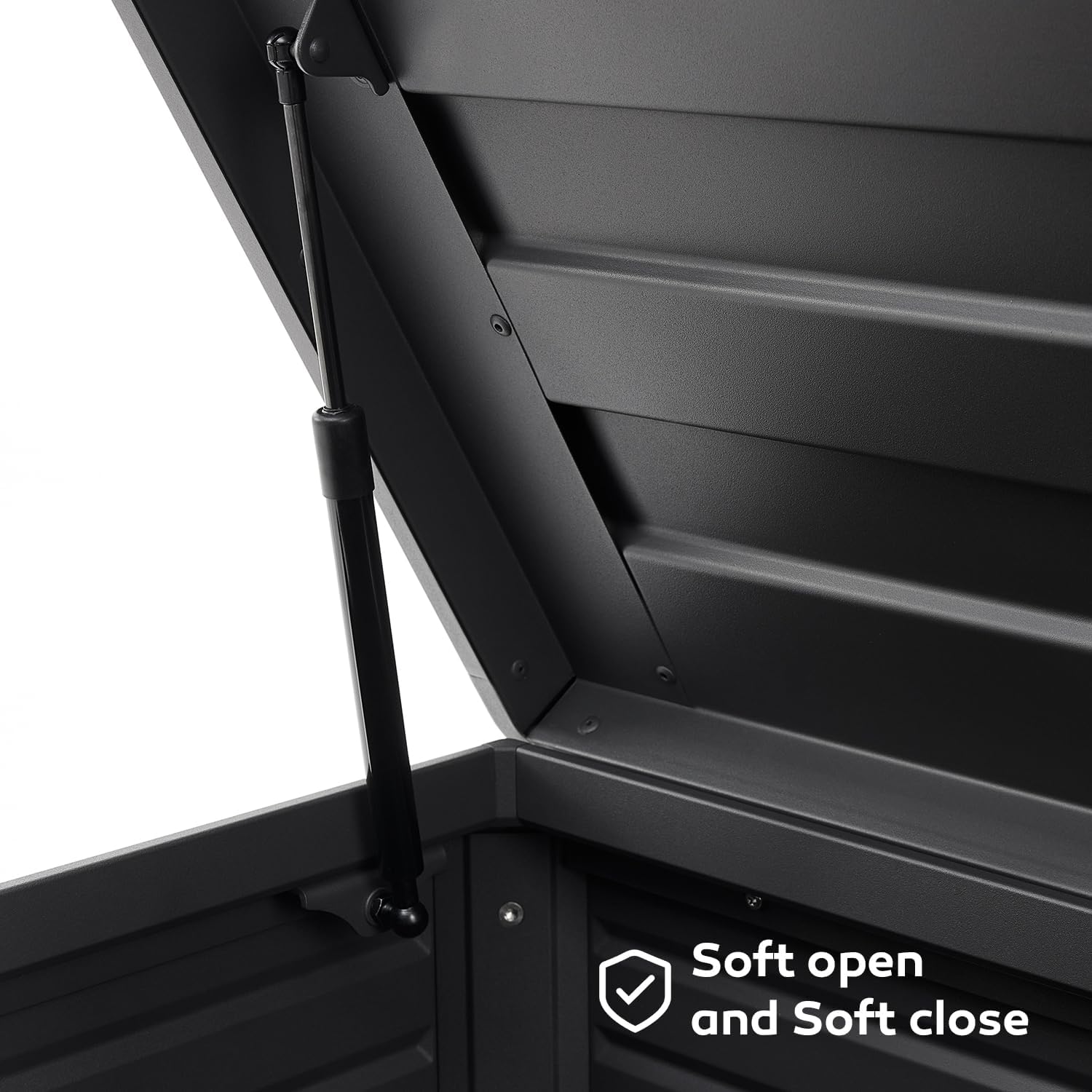 134 Gallon Outdoor Storage Box Waterproof, Metal Deck Box with wheels for Patio Furniture, Garden Tools, Outdoor Cushion, Charcoal