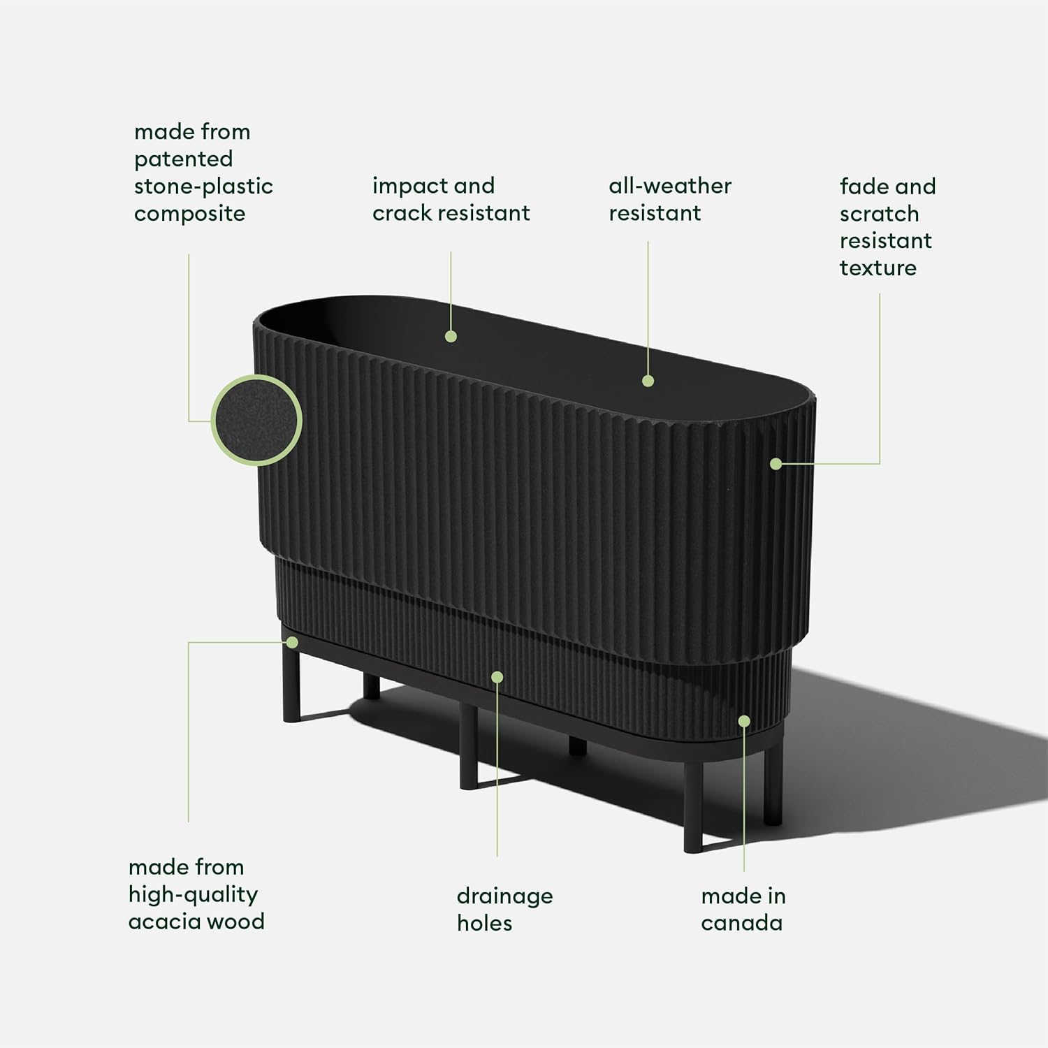 - DURABLE MATERIAL: Made from a patented plastic-stone composite, this fluted planter has a subtle textured finish and is all-weather resistant to cracks, scratches, UV and fading; perfect for hot or cold climates ranging from -20 to +120 degrees