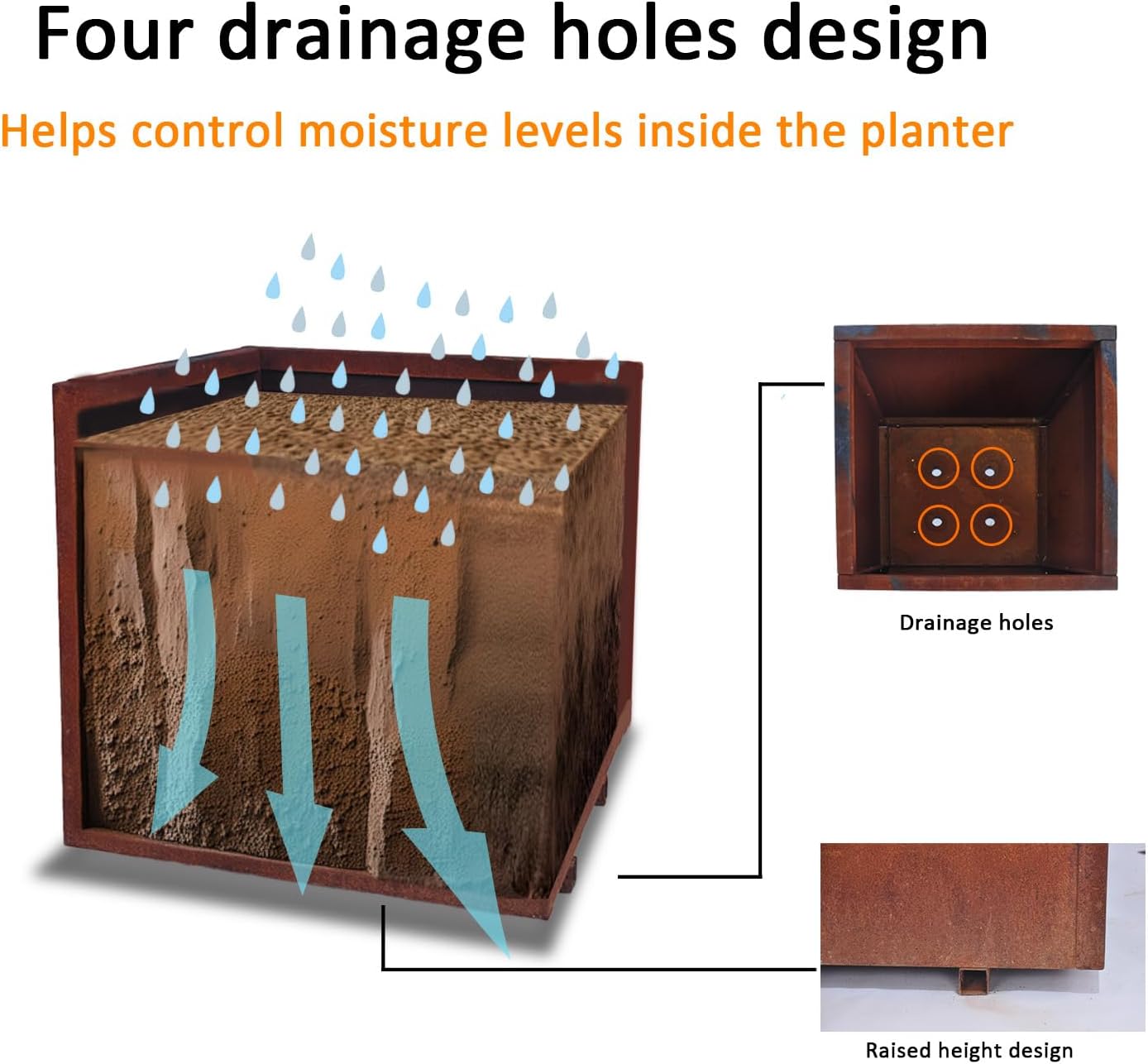 - Durable Material: Made from high-quality Corten steel, this planter offers exceptional weather resistance and forms a unique rust patina over time, ensuring long-lasting use and a distinctive look.