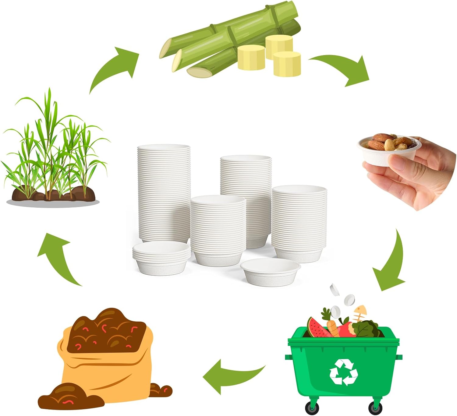 - Compostable Cups: 1 oz compostable condiment sauce cups can be thrown directly into the compost bin after use, and they can be fully composted within 3-6 months, reducing the waste of resources