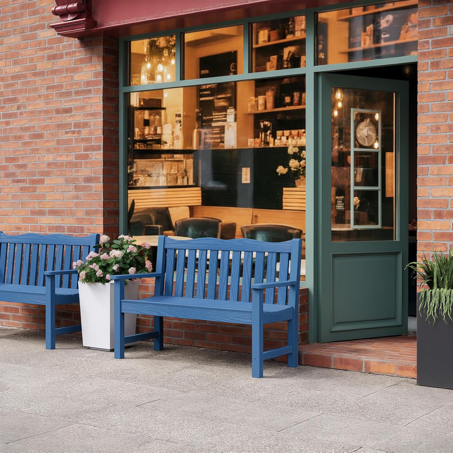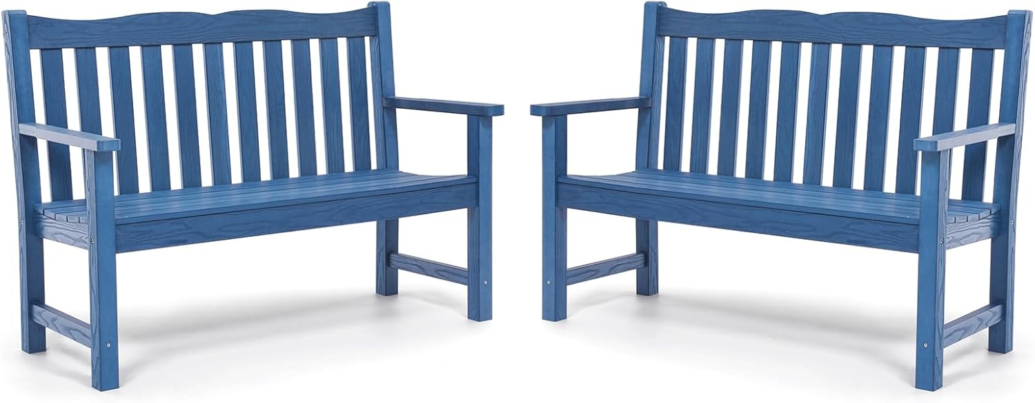 Outdoor Benches Set of 2, 2-Person All-Weather HIPS Garden Bench with 800 lbs Weight Capacity, Never Rot or Fade, Blue
