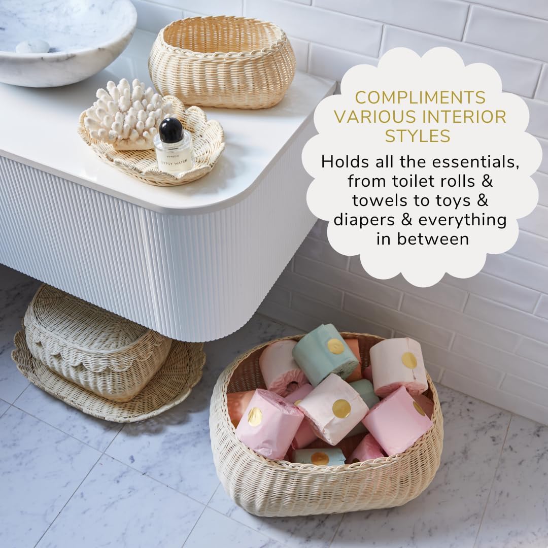 - MULTIFUNCTIONAL CHARM - Ideal for storing toiletries or towels in the bathroom and organizing blankets in the bedroom. The "Fauna" rattan basket also seamlessly handles baby and children’s essentials—from diapers to toys and more—keeping everything neatly arranged and easily accessible