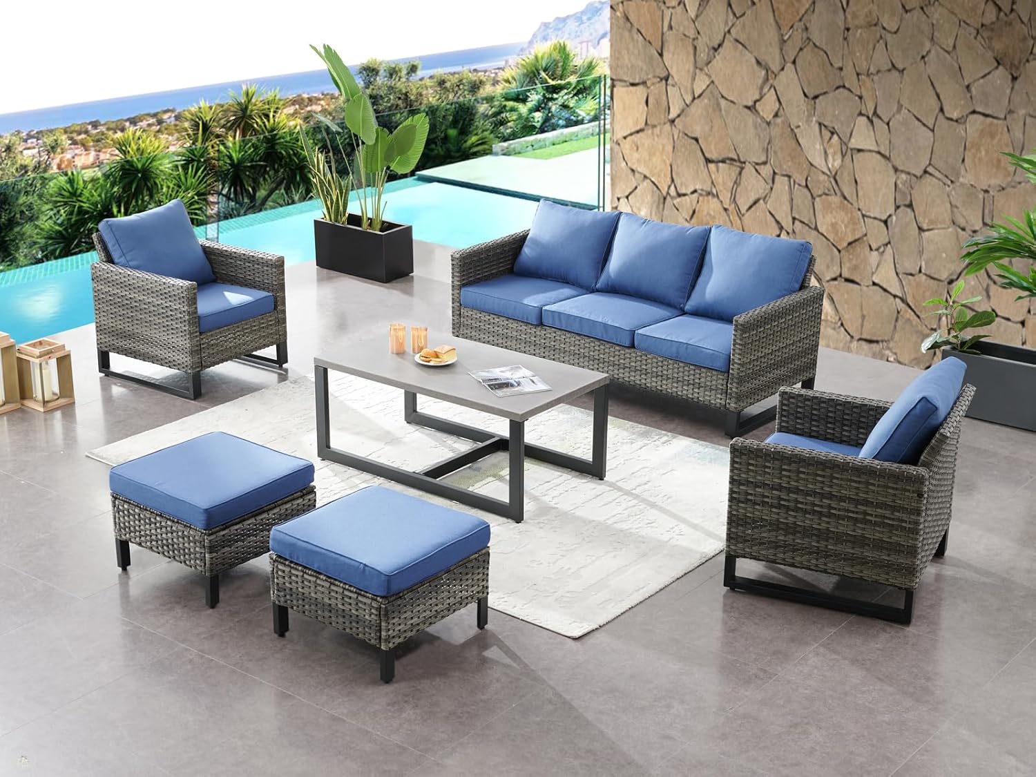 - Deep-seating Design:The Deep-sitting chairs with long and wide armrests, ergonomic backrest, matched with comfortable 4-inch thick sponge-padded cushions,The cushions offers good resilience, not easy to deform or slide, also protect your lumbar and offer a comfortable sitting experience.