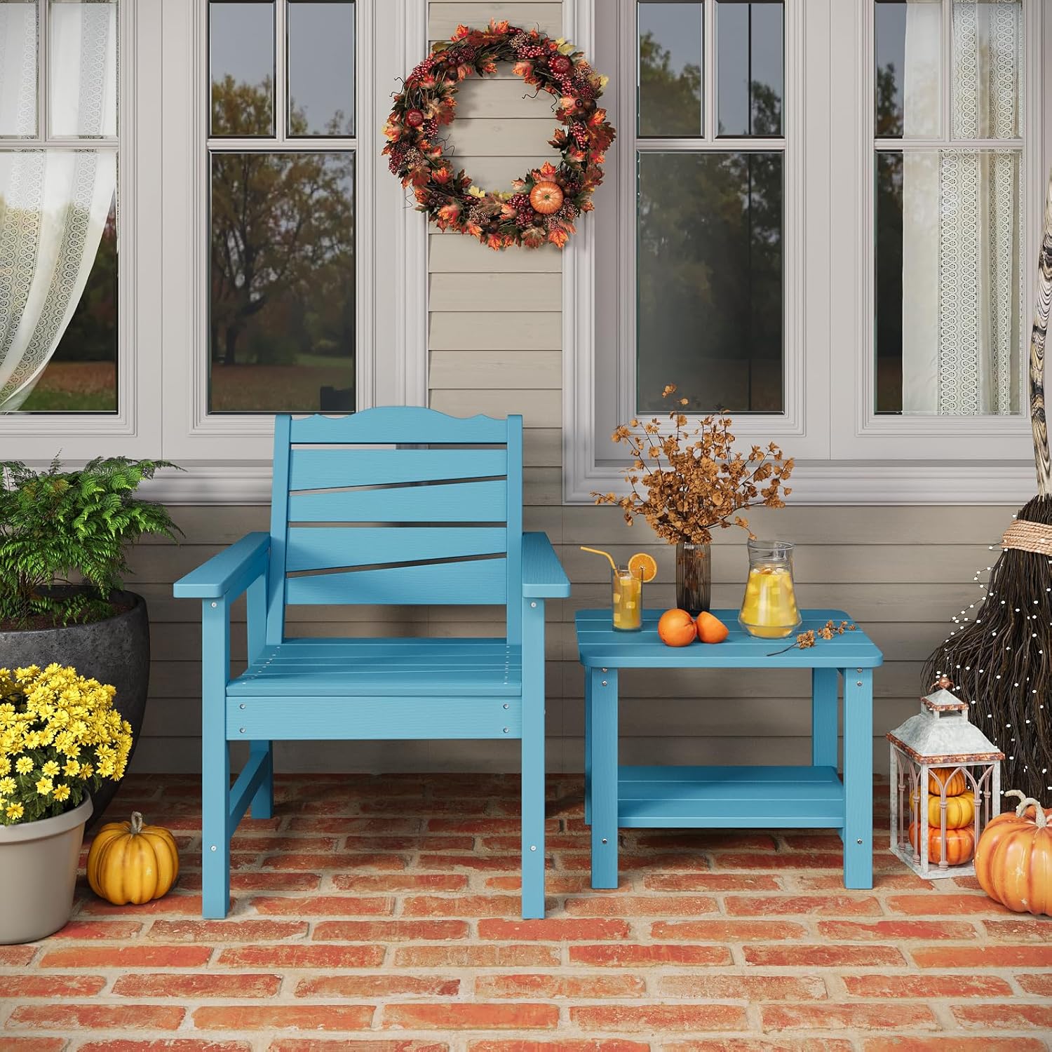 - 【Weatherproof & Carefree】 The patio chair is made of HIPS (poly lumber) & 304 stainless screws, for all weather, never rusts and moldy. No fading, no paint, no harmful substances such as methane.