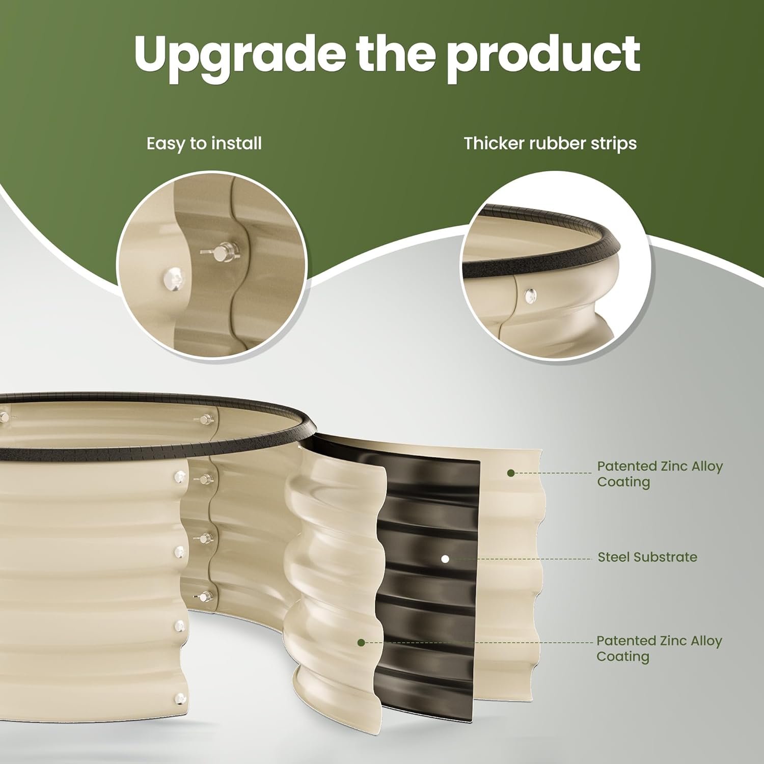 - 【Enhance Garden Aesthetics】 The stable and beautiful design of the round galvanized raised garden bed will enhance the appearance of any garden. For any questions or concerns, please don't hesitate to contact us through Amazon.