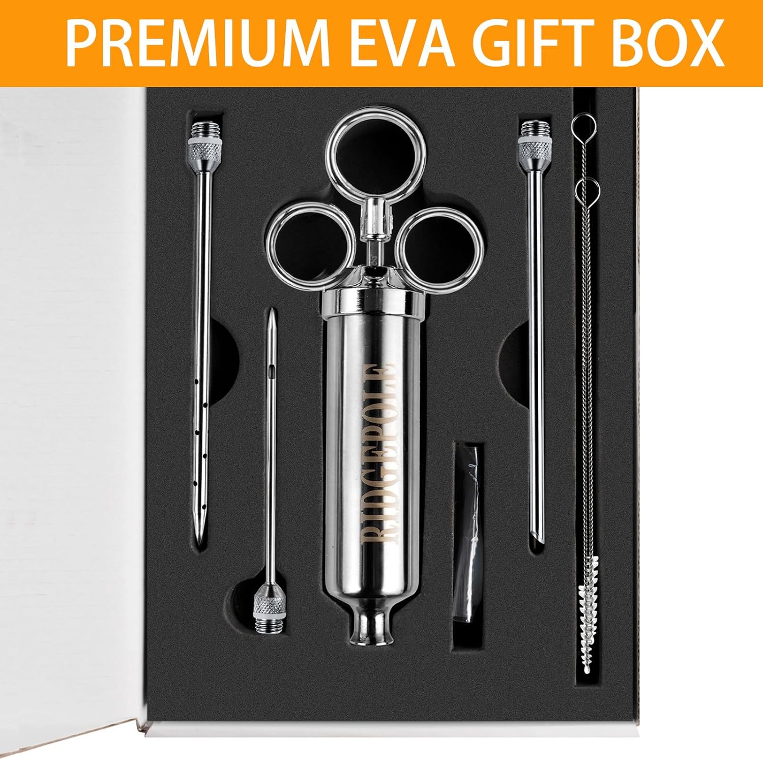 - [Convenient & Fast Cleaning] - All parts of our meat injector are detachable for easy cleaning. Besides, we provide two needle brushes to help you clean it faster and more thoroughly. When you use the seasoning injector, cleaning is straightforward and efficient. Our meat injectors are designed for your convenience, making post-cooking cleanup a breeze.
