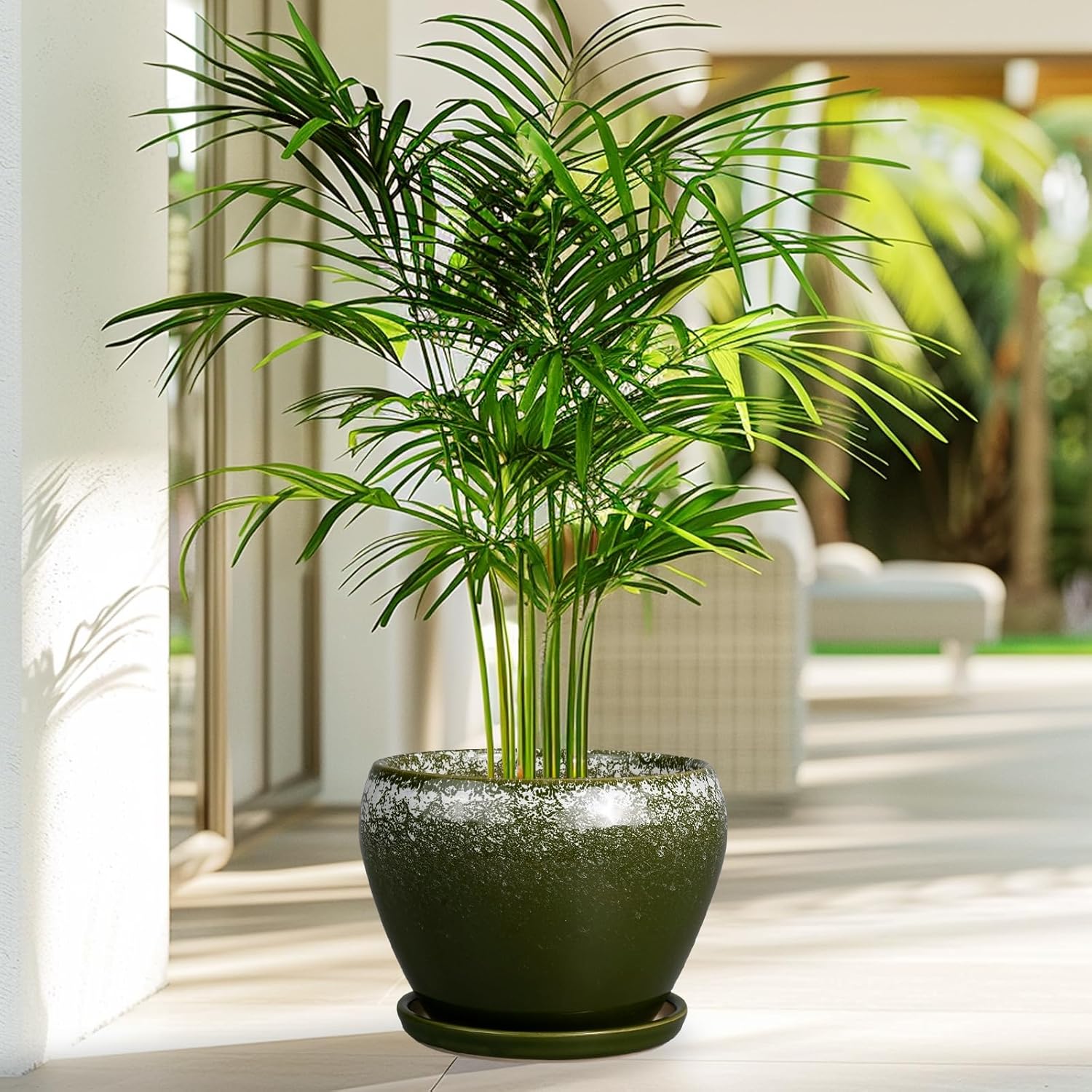 8 Inch Plant Pot - Ceramic Planter with Drainage Hole and Saucer, Modern Flower Pot for Glazed Indoor Plants Outdoor, Dark Green