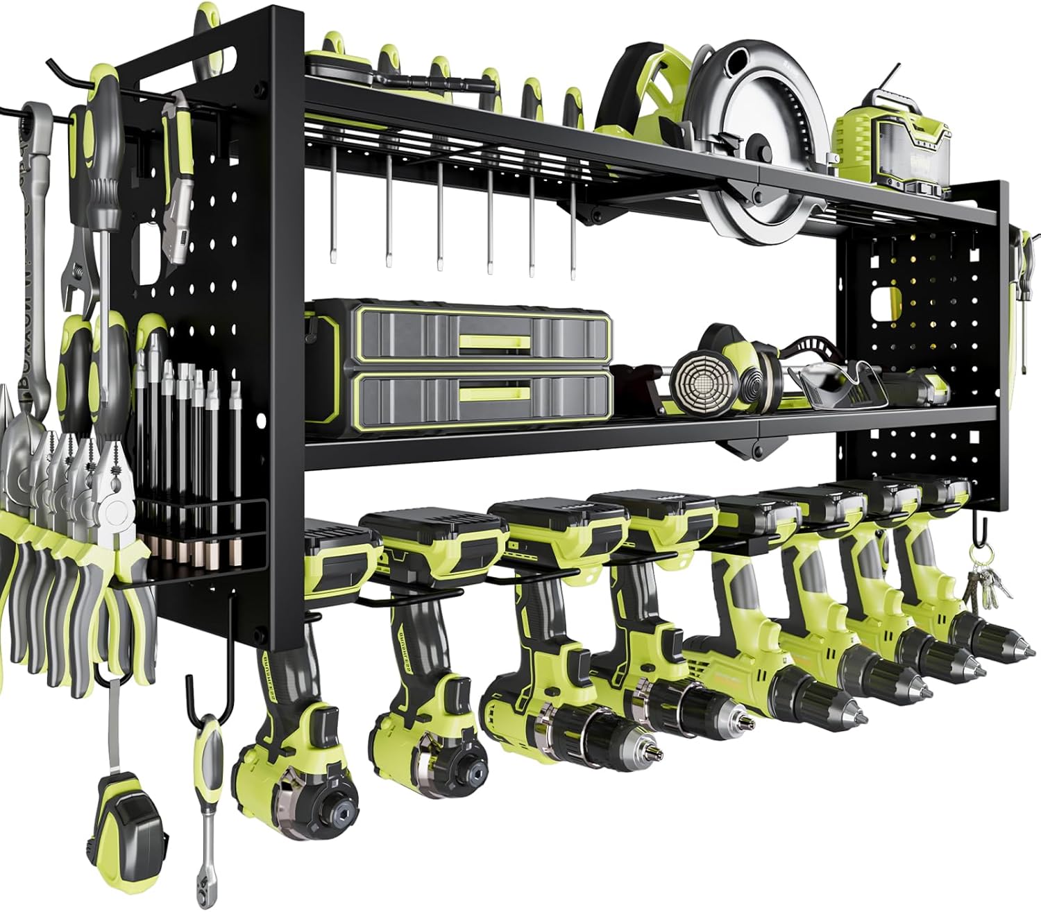 Power Tool Organizer Wall Mount,Cordless Drill Hanger Storage Rack 8 Drill Holder,3 Layers Heavy Duty Power Tool Storage Rack (Black)