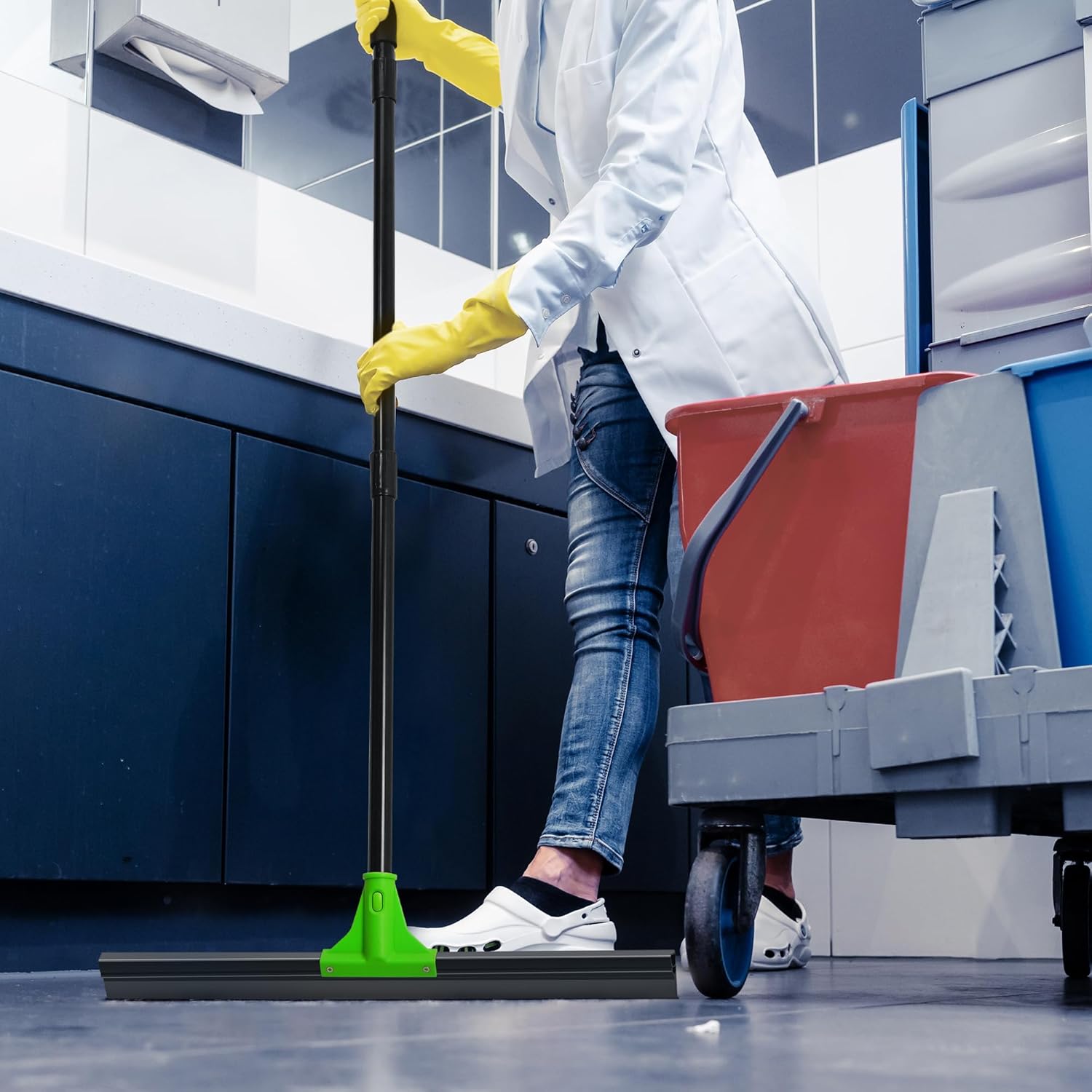 Rubber Floor Squeegee with 24” Heavy Duty Silicone Rubber Scraper Head and 60” Long Adjustable Handle, Shower Squeegees for Concrete Floor, on Multi-Surface Tile Glass Pool Garage Cleaning