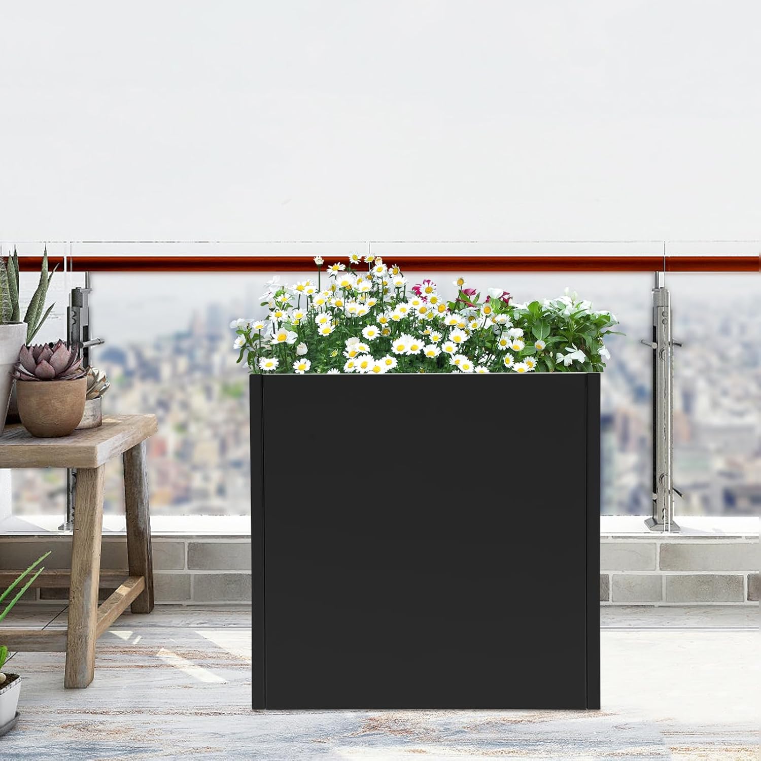 26" L x26 W x26 H Metal Flower Boxes Planter Boxes Outdoor Raised Garden Bed Indoor Outdoor Planting Bed Black Square Planter Box for Patios Lawn Yard Decor Storage