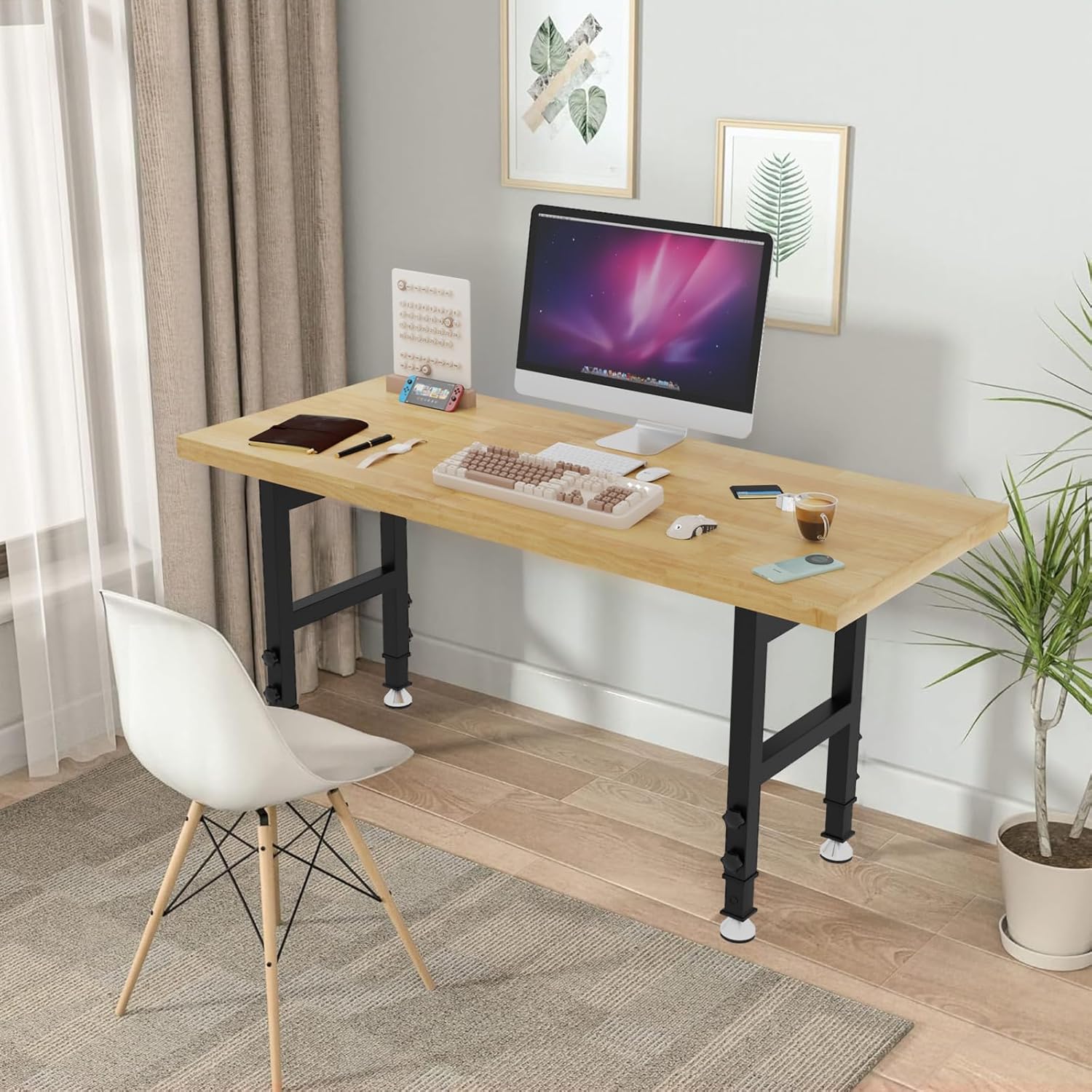 - [engineered for heavy-duty use]: Supported by sturdy iron brackets and durable particle board up to 3000 pounds. With a 25mm thick work surface measuring 60''×24''×37'', it provides a reliable and long-lasting workspace solution.