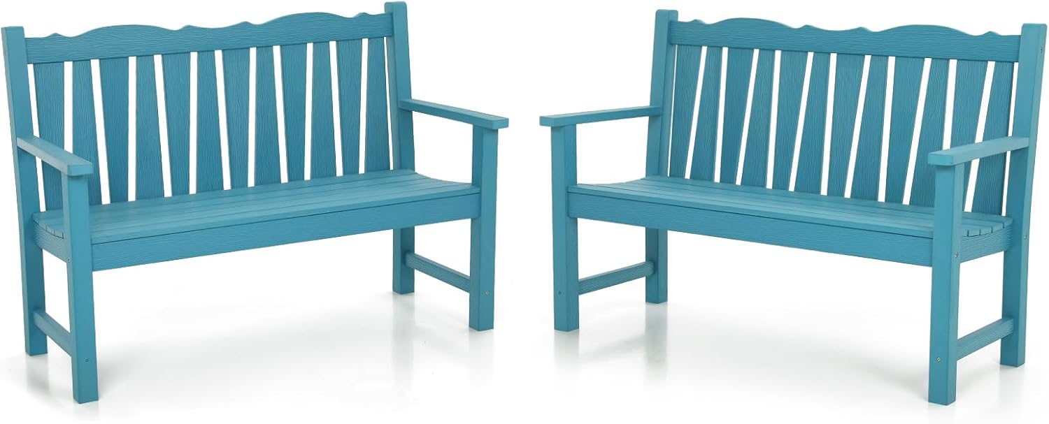 Outdoor Bench Set of 2, Weatherproof Garden Benches for Outdoors, All Weather HIPS Patio Bench Holds up to 800lbs, Never Rot or Fade, Comfort Bench for Porch Garden Patio Yard and Park