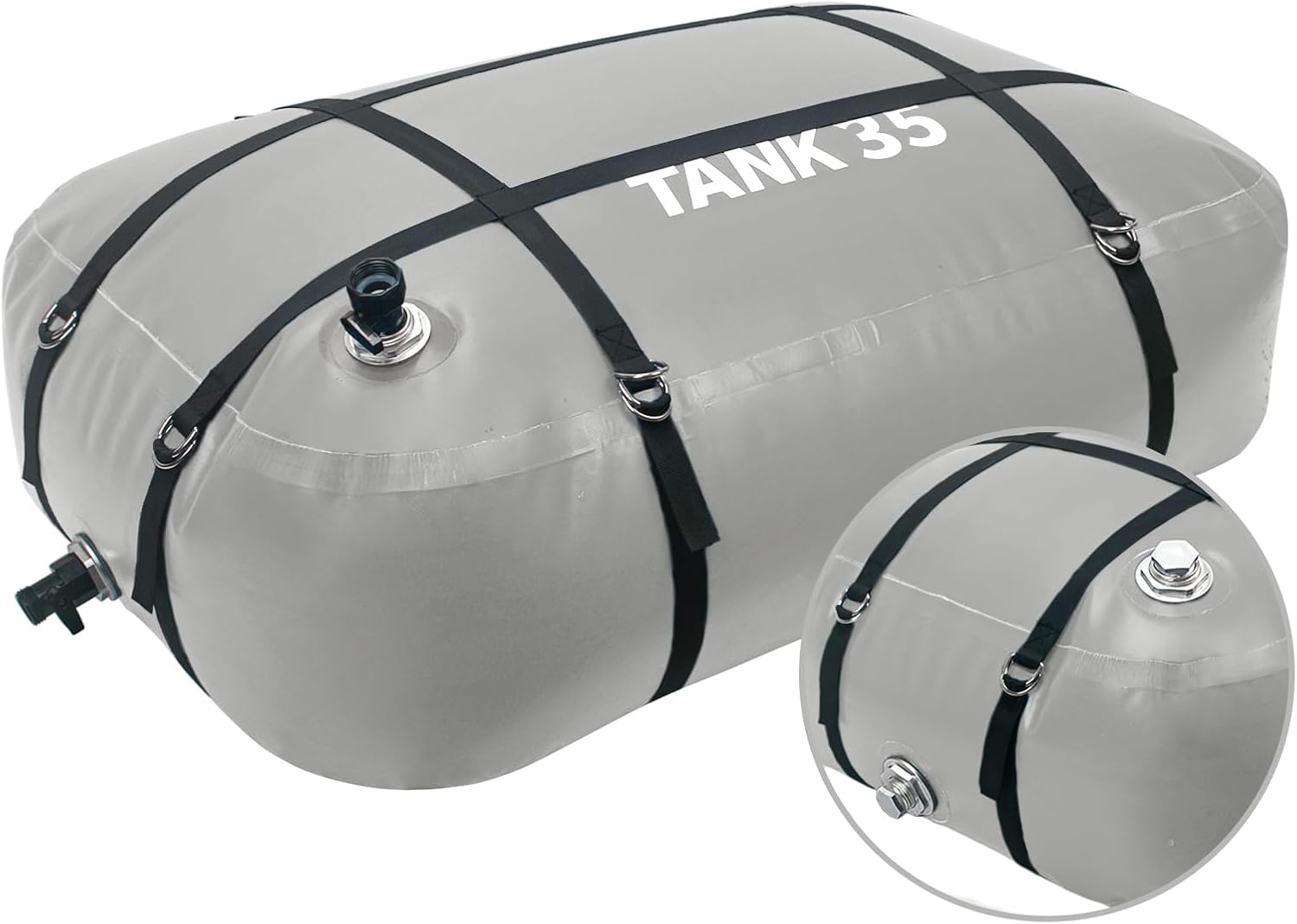 TPU Water Storage Bladder, 35 Gallon Portable RV Fresh Water Tank, Food Grade BPA Free Collapsible Flexible Container for Drinking, Camping, Irrigation & Emergency-Hurricane, Drought, Fire (3/4” GHT)