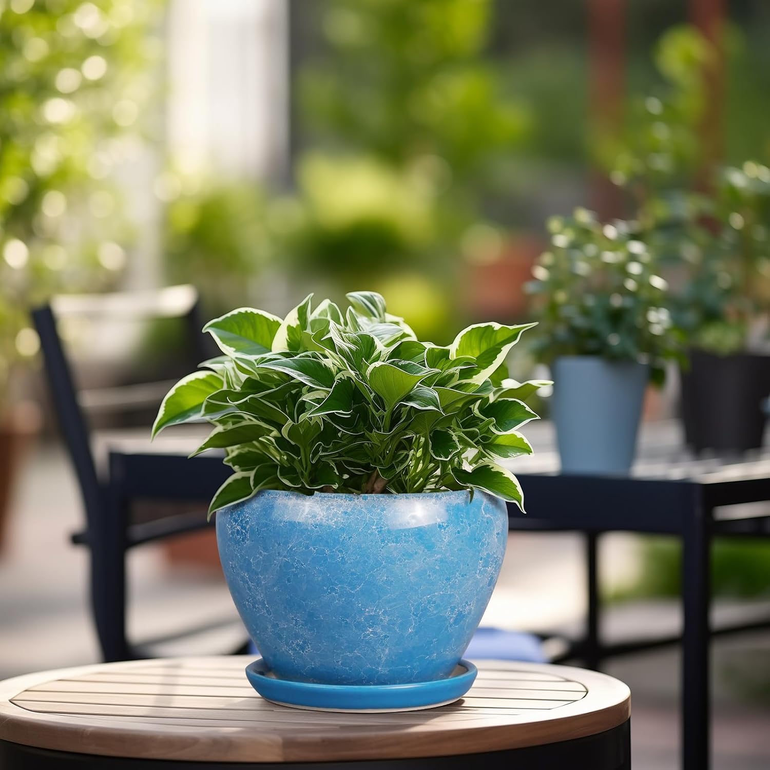6 Inch Plant Pot - Ceramic Planter Pot with Drainage Hole and Saucer, Glaze Succulent Pot Modern Round Flower Pot for Indoor Plants, Blue