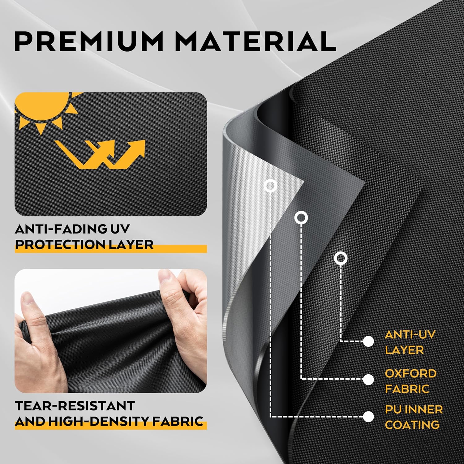 - ANTI-TEAR MATERIAL – Designed to be long lasting, this outdoor table cover is made of high-density 420D oxford fabric with reinforced stitching, which is lightweight but durable materials that can withstand harsh weather conditions and resist tearing, fading, and other types of damage