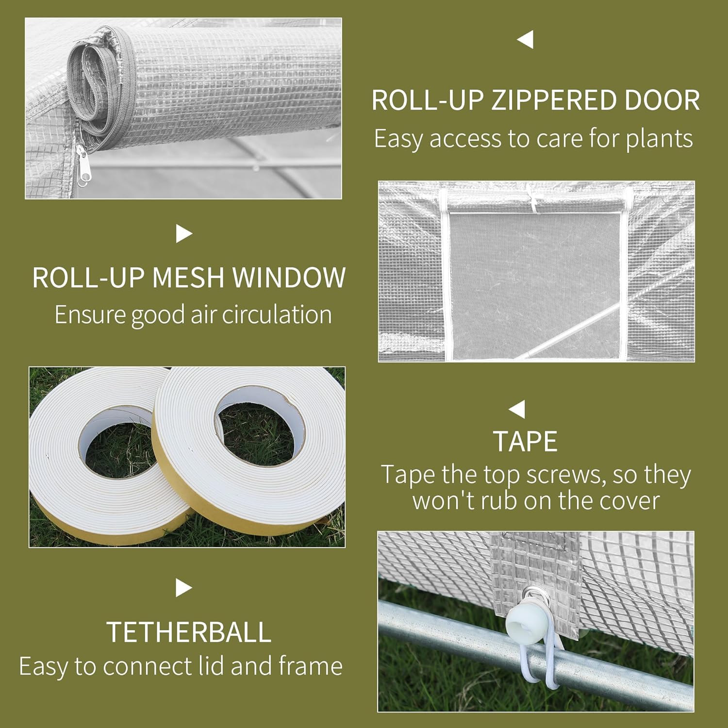 - Optimal Plant Protection: Safeguard your plants from adverse weather conditions with our greenhouse's 140 GSM PE cover. This cover allows 85% of sunlight to reach your plants while protecting them from UV rays with its tear-resistant reinforcement grid. Secure the cover effortlessly using the provided tethers and tape to ensure it stays in place.