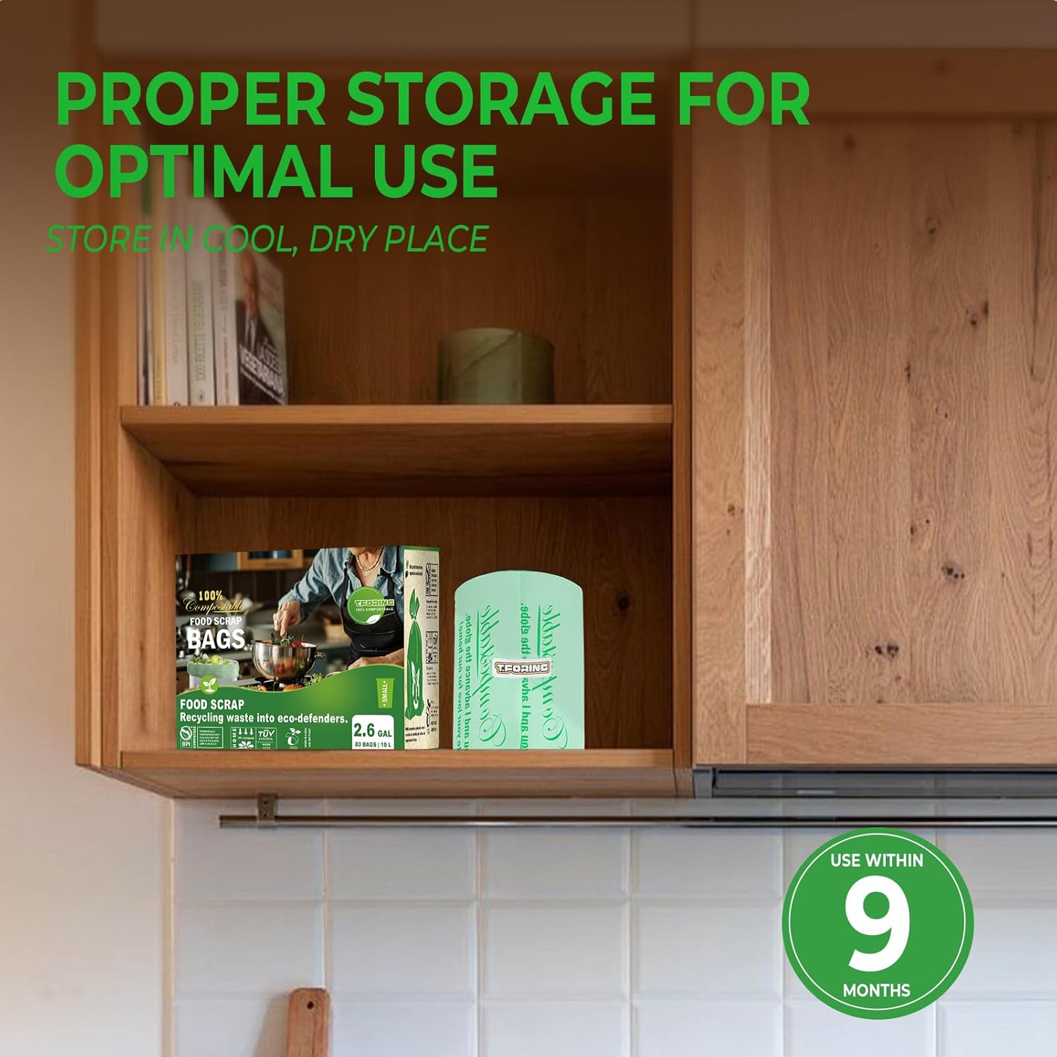 - 【Eco-friendly for Environment】T.FORING compostable bags are made from corn starch and plant-based materials,no polyethylene.Bags are durable, nontoxic, easy to use and great for the environment.T.FORING 2.6 gallon trash bags decomposes fully into CO2, water and organic biomass after 6-12 months, leaving no traces of plastic in the environment.