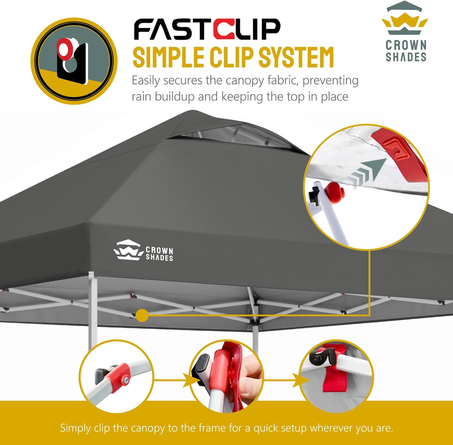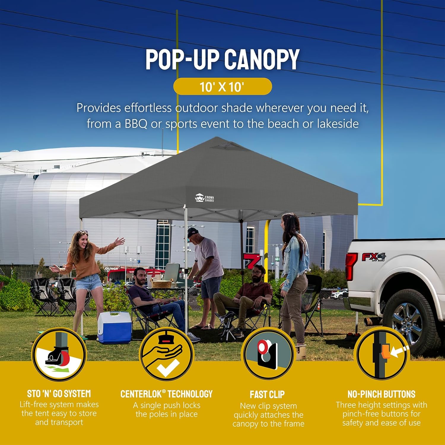CROWN SHADES 10x10 Pop Up Canopy - Beach Tent with One Push Setup - Easy Outdoor Sun Shade Shelter for Events, Parties - Gazebo with STO-N-Go Cover Bag, Silver Coated Top, Grid Grey