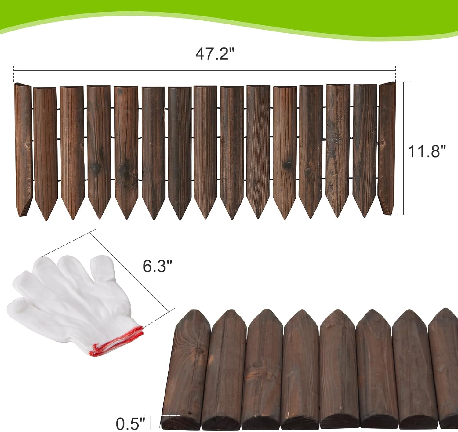 Wood Garden Edging Border Wooden Short Fence Landscape Edging Anti Corrosive Lawn Fence Border with Gloves Decorative Flower Bed Border for Yard Patio Pathway Tree Outdoor-47.2" L X 11.8" H (3PACK)
