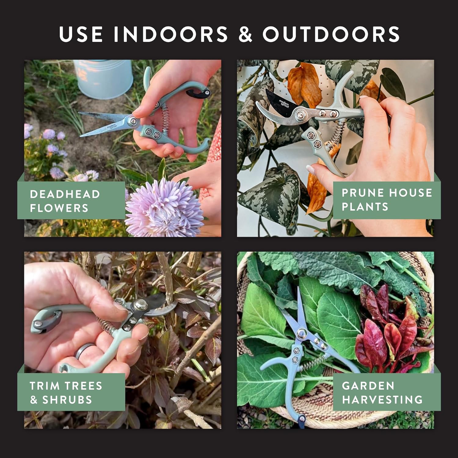 - Versatile Garden Care Set: This Modern Sprout set includes both precision pruning shears & durable garden pruners to cover a wide range of gardening tasks; Whether you’re using shears to trim herbs, snipping flowers, maintaining shrubs, or use heavy duty pruners for gardening to prune branches up to ½" diameter, this combo ensures clean, healthy cuts every time; Perfect for both indoor & outdoor use, it’s an essential addition to your garden accessories and garden essentials