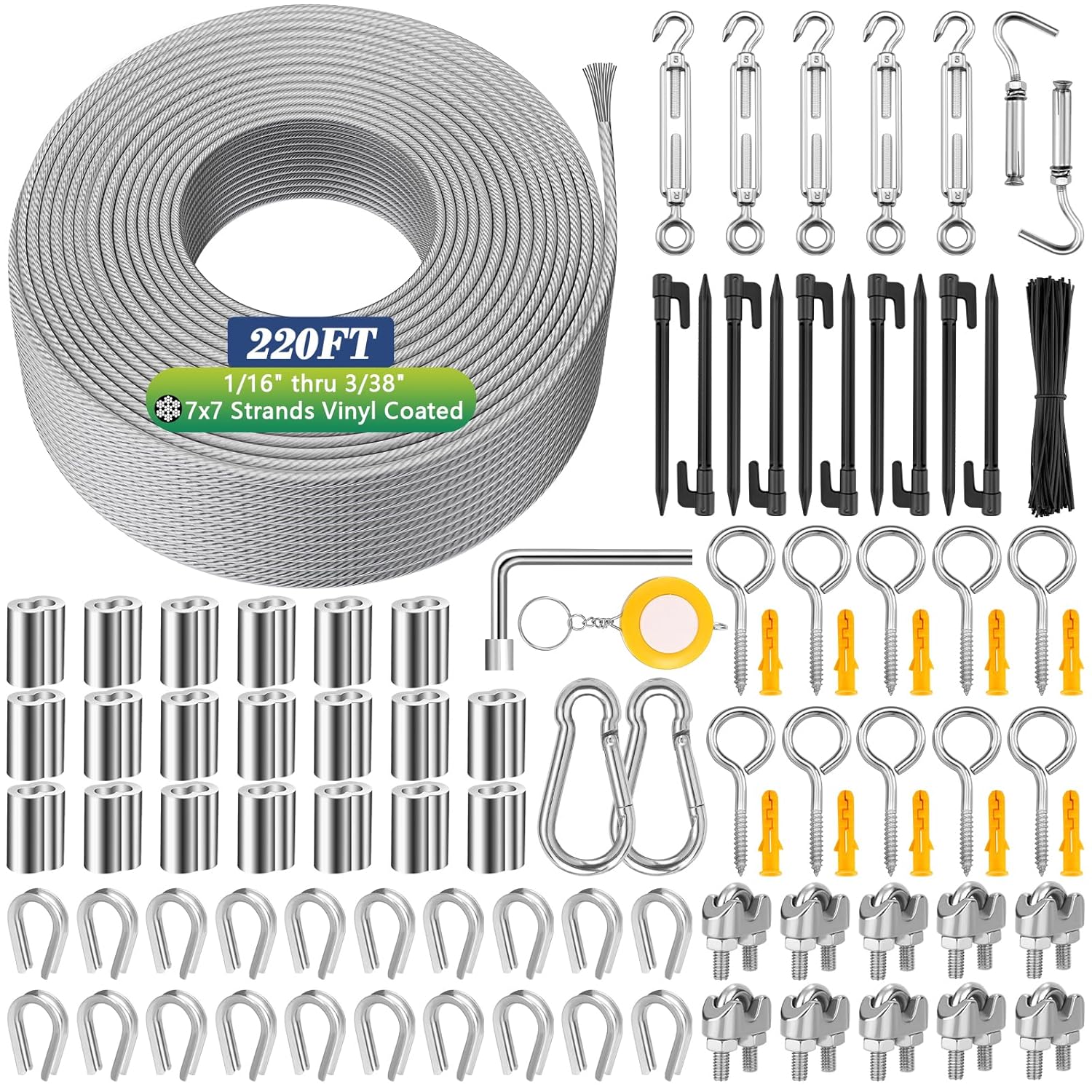 - [Effortless Installation] Say goodbye to complicated setups! Our vinyl coated stainless steel cables are a breeze to install. Simply cut the desired length using cable cutters, secure the buckle head with M3 thimbles and aluminum sleeves, and utilize the included tools for various scenarios