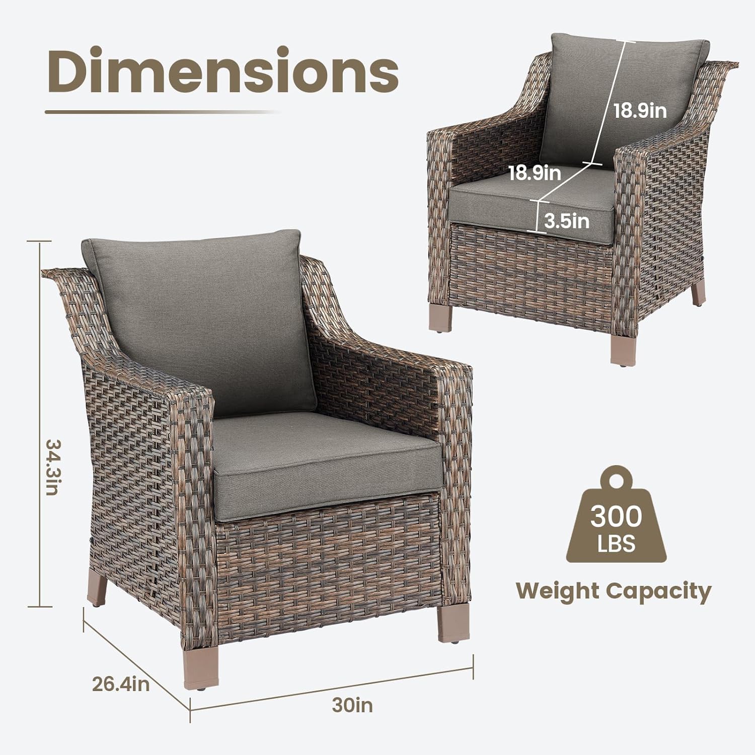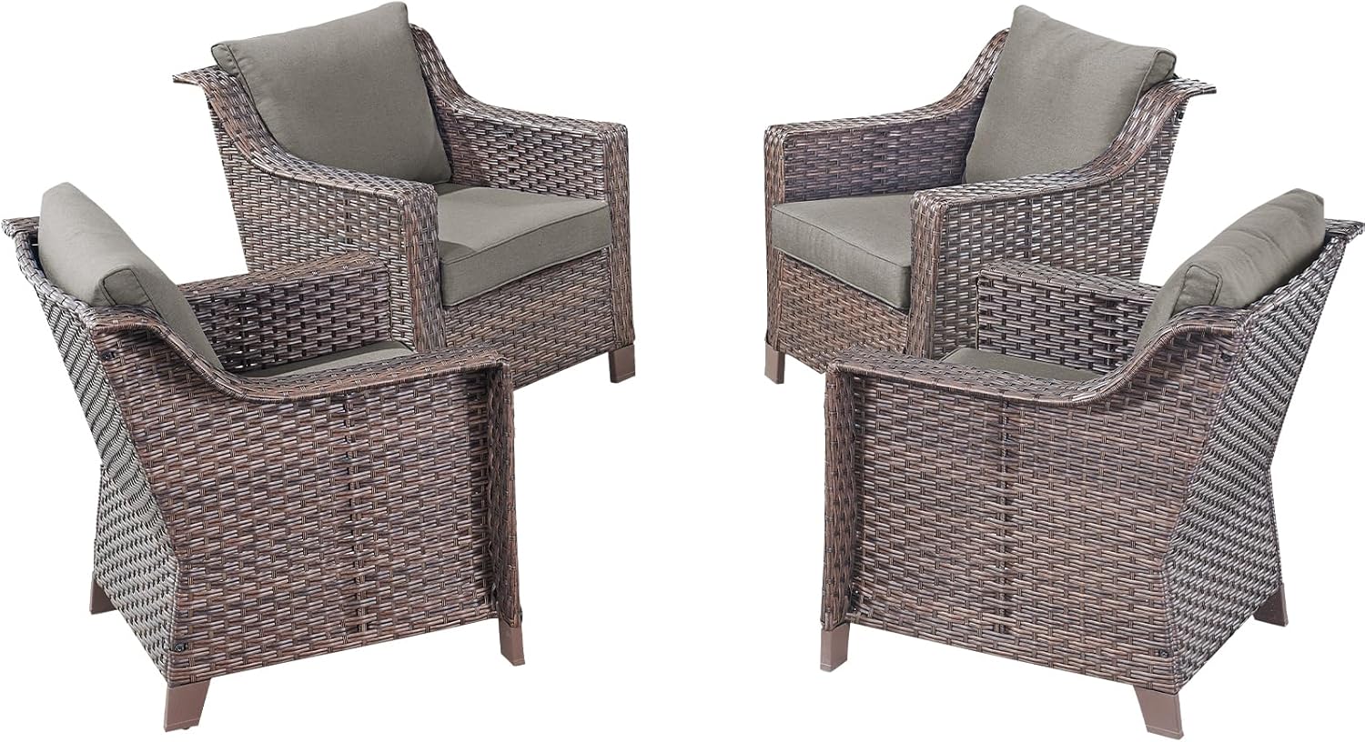 Outdoor Wicker Patio Chairs Set of 4 - Heavy Duty Outside Rattan Lawn Chair for Front Porch Balcony Backyard Yard Deck Poolside Apartment – Brown/Grey