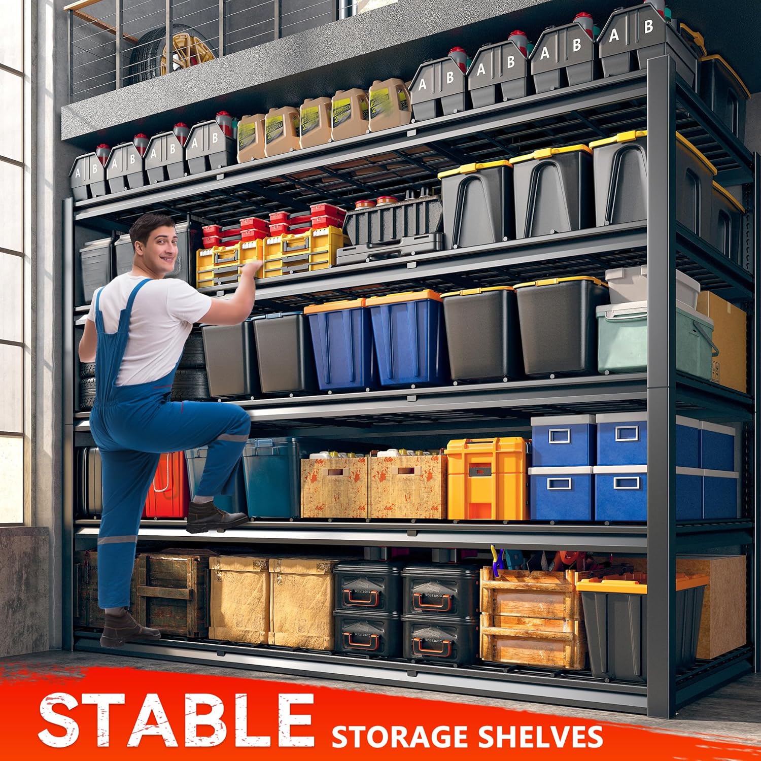 - 【60"W x 72"H x 24"D Wide Storage Shelves】The garage shelving heavy duty is suitable for garage, warehouse, basement, warehouse, library, etc. The 5 tier metal shelves for storage not only expands your storage space, makes your home clean