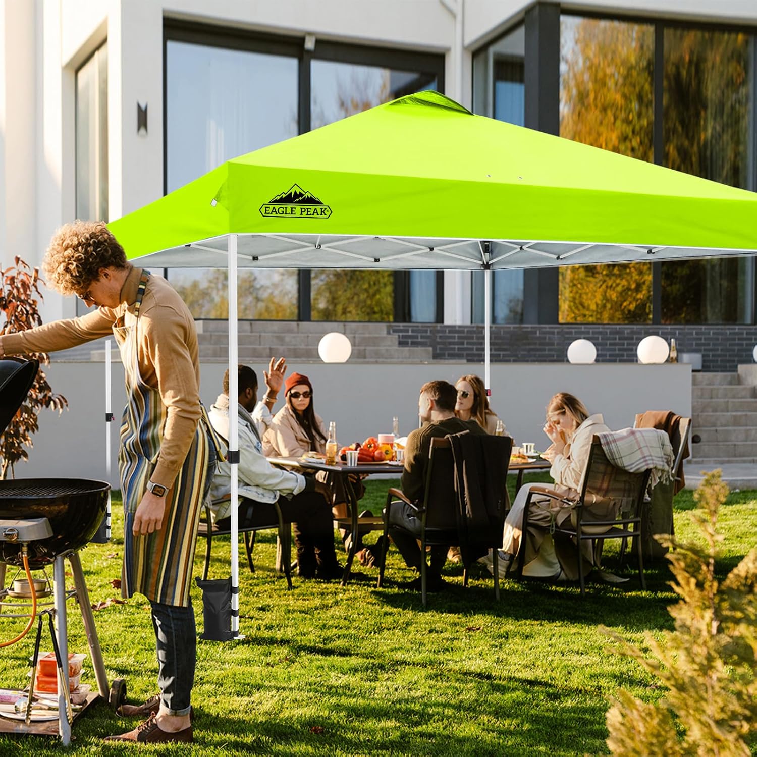 EAGLE PEAK Pop Up Canopy Tent with Wheeled Carry Bag, 8 Stakes, 4 Ropes, 4 Weight Bags, Easy Set Up Tent Canopy, 12x12 ft, 144sqft of Shade, Neon Green