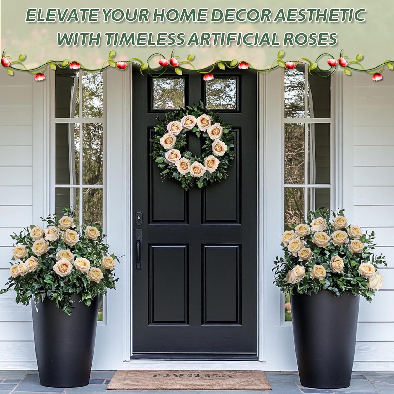 - Long-Lasting Quality: Unlike fresh flowers that wither and fade over time, these fake champagne roses silk flowers maintain their beauty indefinitely. They are a cost-effective solution for long-term decor, offering lasting elegance without the need for replacement; Easy to Maintain: These artificial roses require no water, sunlight, or pruning. Simply wipe them clean to keep them looking fresh and vibrant. Enjoy their beauty without the upkeep required for real flowers