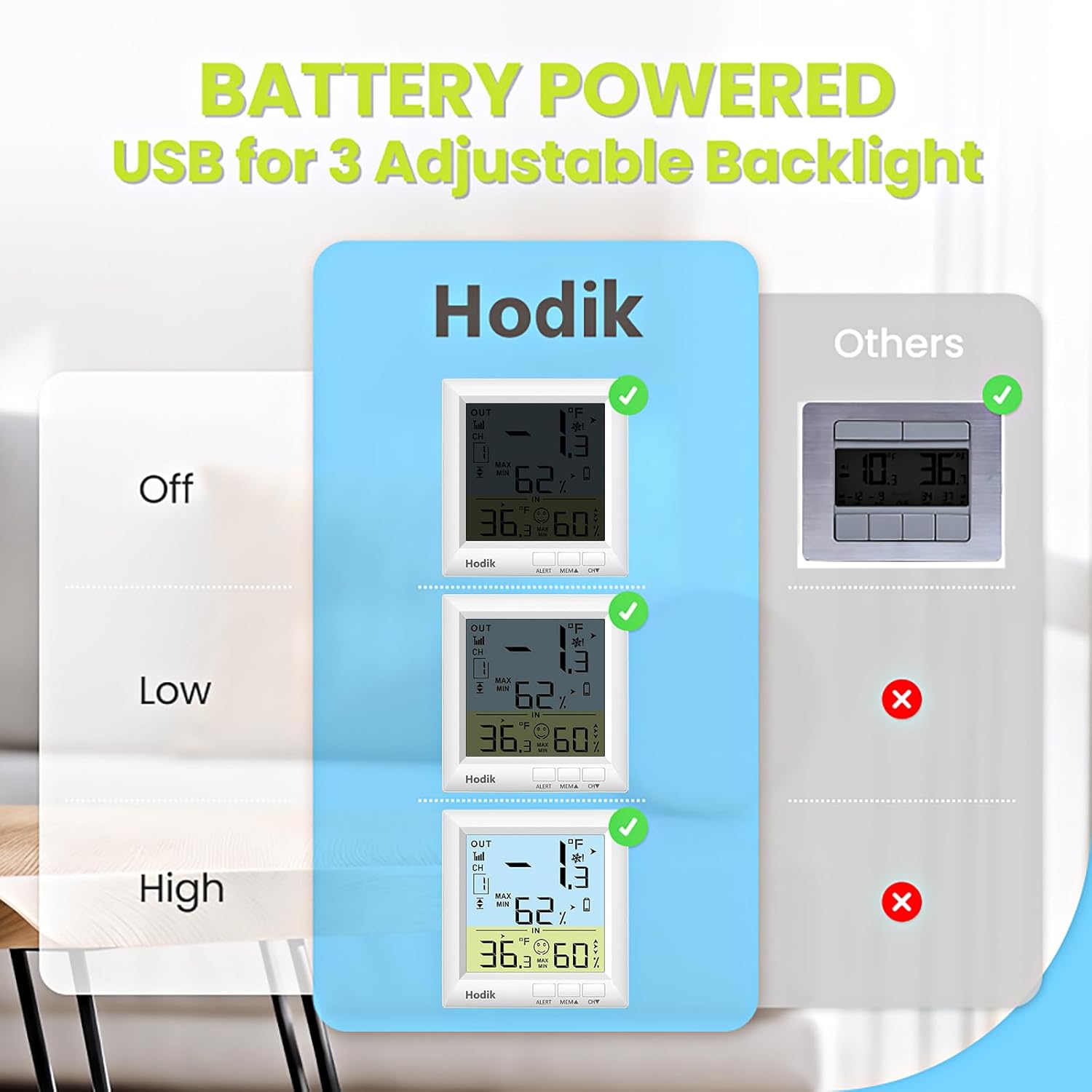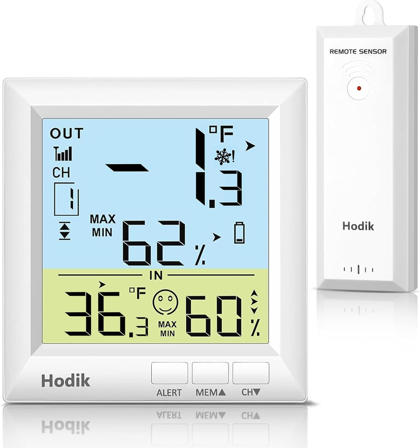 - 【Pre-calibrated Sensor】: This digital refrigerator thermometer with alarm is smart and accurate, with a temperature accuracy of ±0.5°F and humidity of ±2%. Sensor temp range: -40 °F to 158°F; humidity range: 1% to 99%, perfect for refrigerator, also widely use for different occasions.