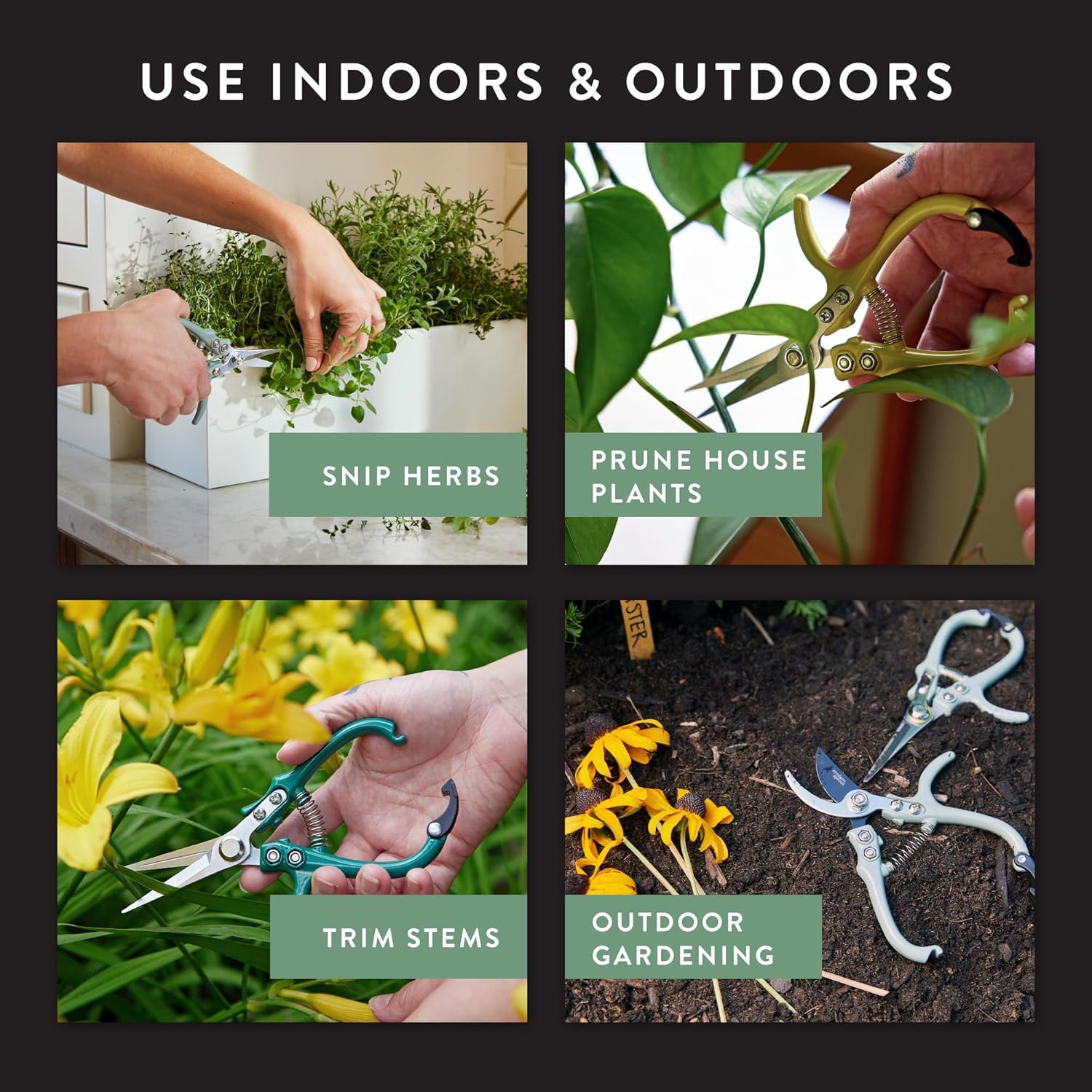 - Precision Plant Care: These gardening shears are perfect for trimming herbs & flowers; Their compact, fine-tipped, rust-resistant high-carbon steel blades offer precise cutting in tight spaces; Ideal for daily use in gardens, pots & on delicate stems