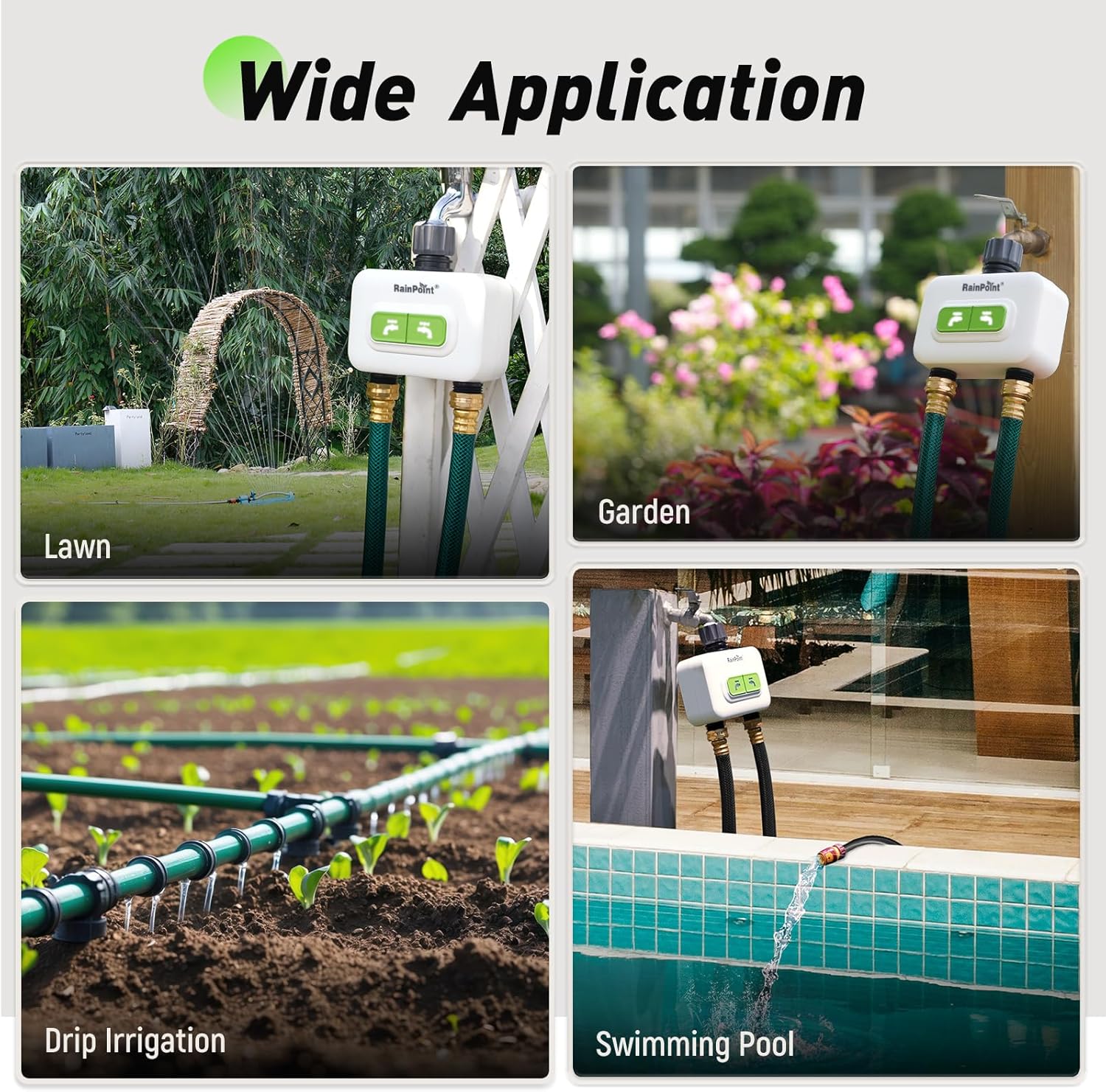 - 【Smart Watering Features for Efficiency and Conservation】Smart features like rain delay, manual override, and water-saving options to help you conserve water and adapt to changing weather conditions. By intelligently managing your garden's watering schedule, you can save water, reduce run-off, and promote sustainable gardening practices.