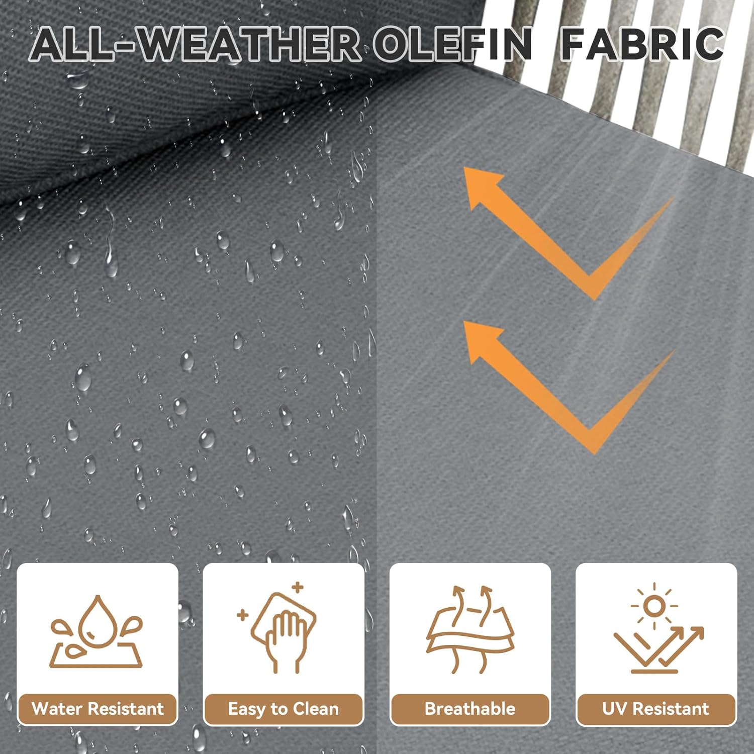- Durable and Easy-to-Maintain Fabric: The cushions are crafted from Olefin fabric, offering 800 hours of UV protection and water resistance, making this outdoor couch ideal for all-weather use. The covers are removable and washable, featuring hidden zippers for easy cleaning. Enjoy a low-maintenance patio set that stays fresh and inviting throughout the seasons