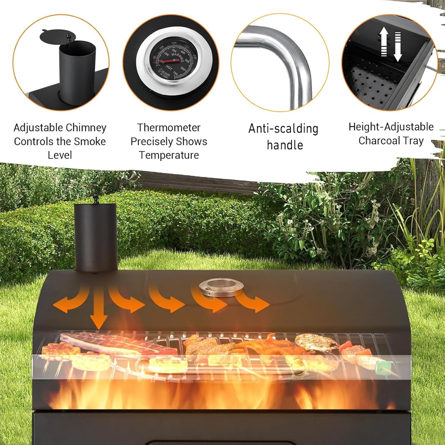 - Liftable Charcoal Tray & Temperature Gauge:Liftable Charcoal Tray & Temperature Gauge The liftable charcoal tray lets you easily adjust the flame height, while the built-in temperature gauge ensures accurate heat control. A must-have for any charcoal grill enthusiast.