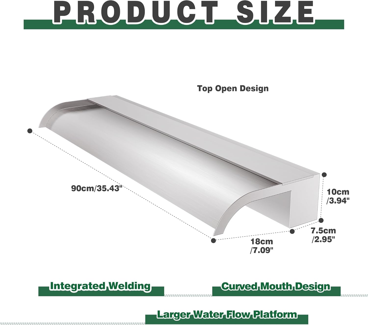 - 【Anti-Rust Spillway Waterfall】- Our welded in one body one-piece 304 stainless steel construction of this spillway waterfall provides long-lasting strength, rust resistance, and leakproof performance. The open lip design creates an elegant freefalling waterfall that adds decorative flair to ponds and pools. The soothing sound of the cascading water promotes relaxation and tranquility. LED light strips not included, but available separately.
