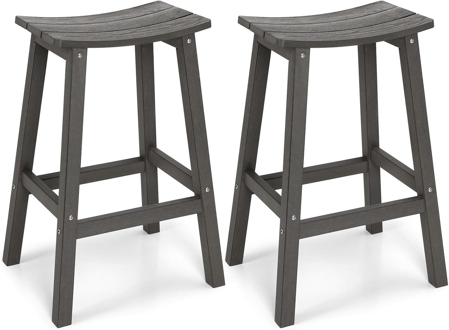 Weatherproof Bar Stools Set of 2, 28" Height Outdoor Bar Stools Holds up to 400 lbs, Saddle Seat, Bar Height Stools for Patio, Garden, and Kitchen Island, Gray