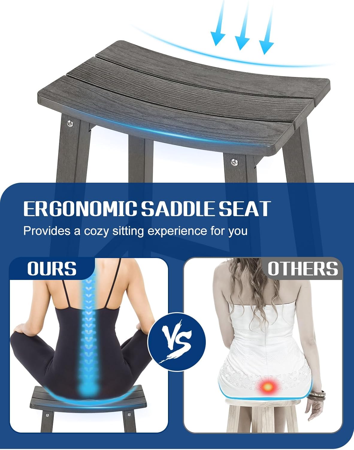 - 【Weatherproof Materials】 The bar stools made of HIPS (poly lumber), with 304 stainless screws. It's for all-weather, never rusts and moldy. It can withstand hot sun, heavy snow, salt spray and strong coastal wind.
