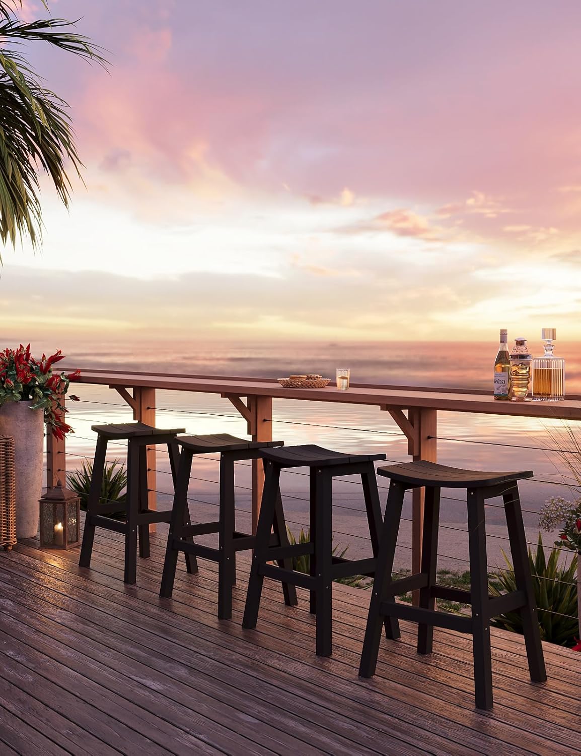 Weatherproof Bar Stools Set of 4, 28" Height Outdoor Bar Stools Holds up to 400 lbs, Saddle Seat, Bar Height Stools for Patio, Garden, and Kitchen Island, Black
