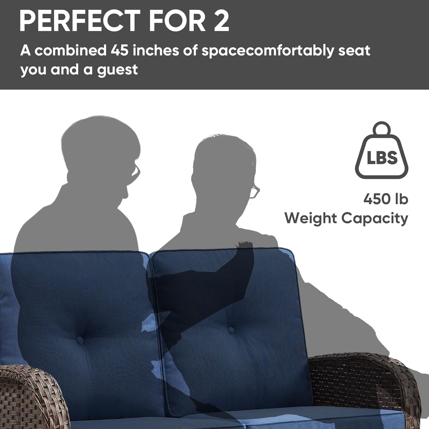 HUMMUH Outdoor Loveseat Sofa 2-Seat PE Wicker Outdoor Couch with Coffee Table,Deep Seat High Back Outdoor Patio Furniture for Patio,Garden,Porch,Deck(Blue)